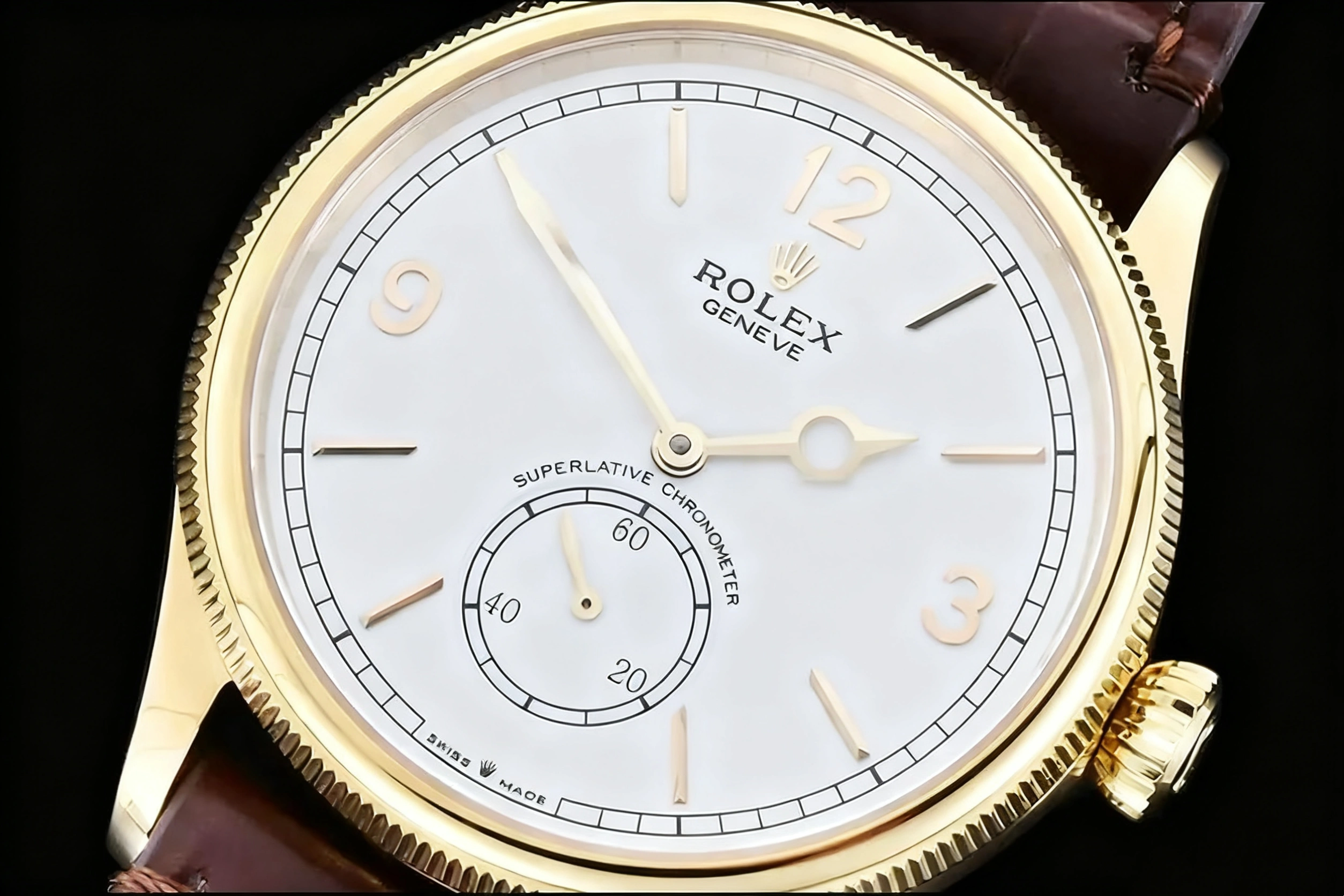 DIAL COLOR: White Dial with Stick Markers and 3, 9, 12 Arabic Markers