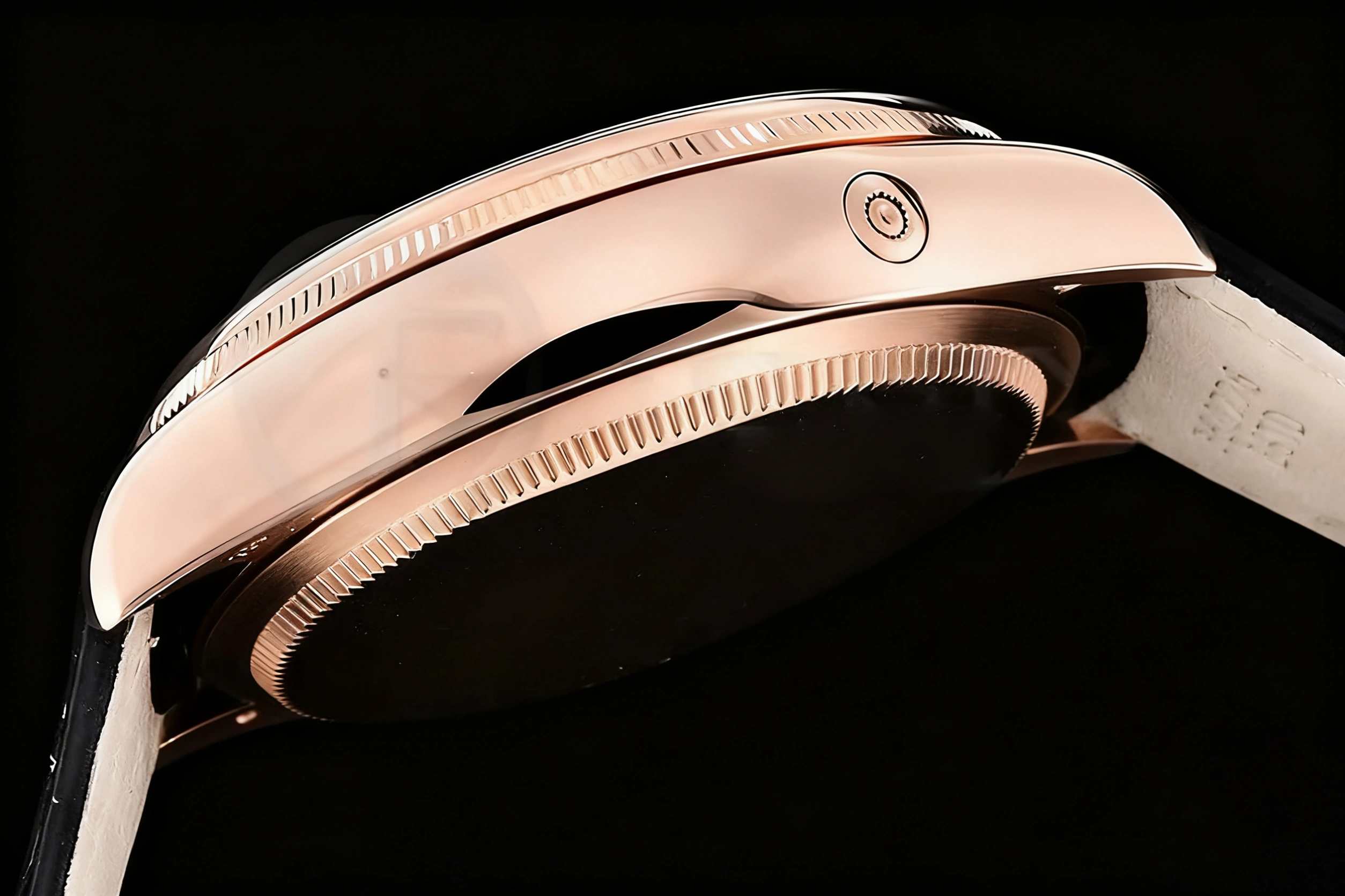 CASE MATERIAL: 18K Rose Gold Thick Plated (5 mils) on Solid Stainless Steel 904L