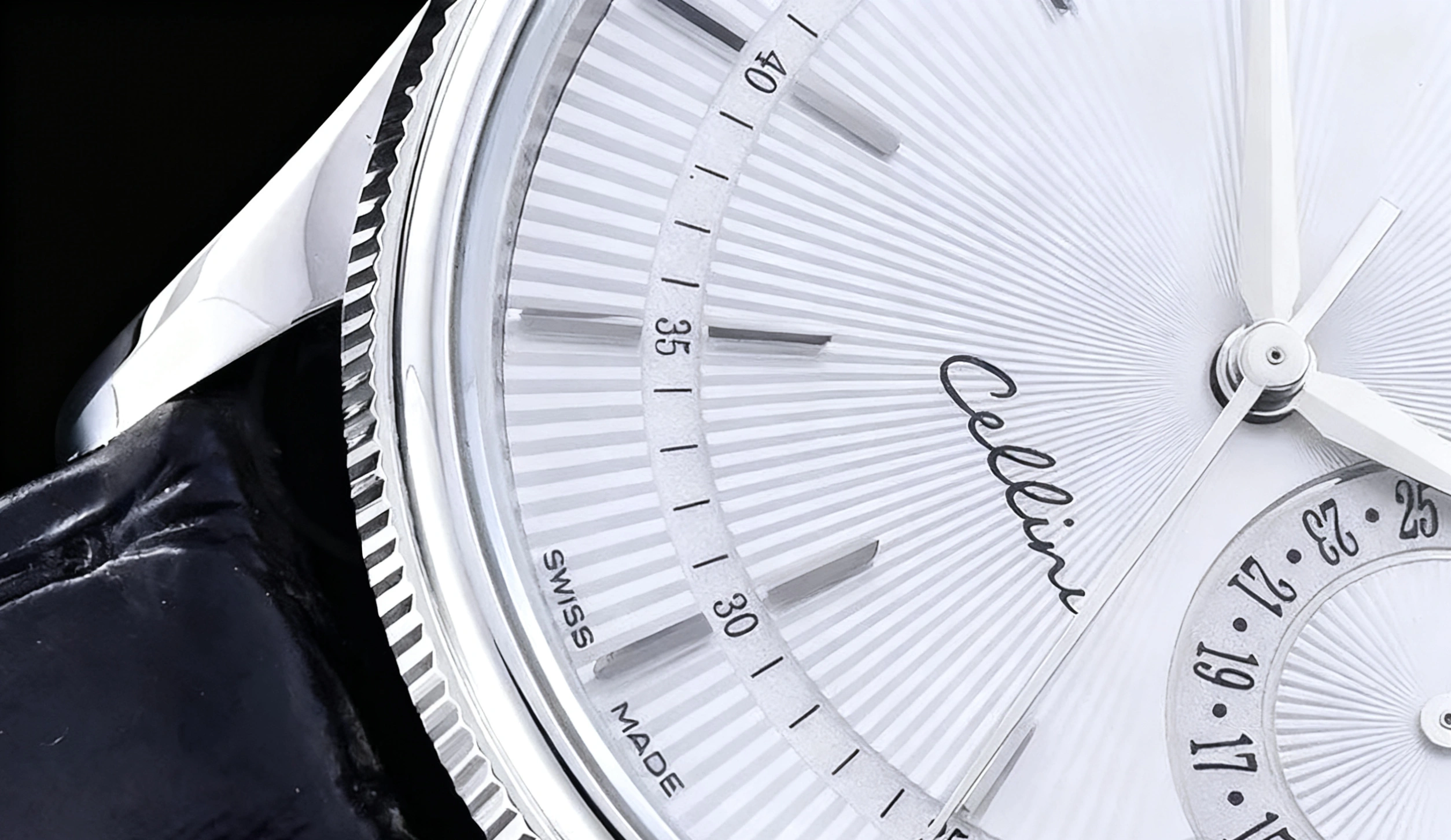 DATE INDICATOR: At 3:00 Subdial (Adjusted via crown)