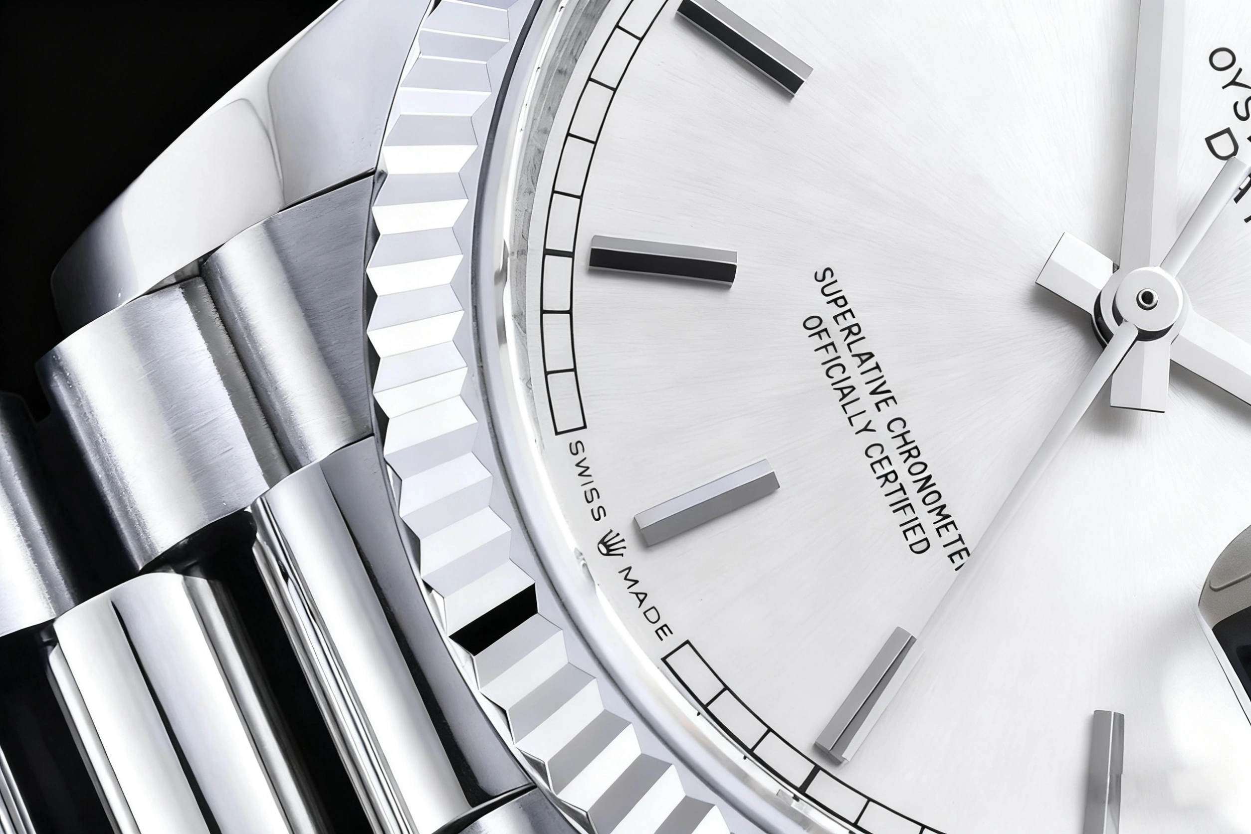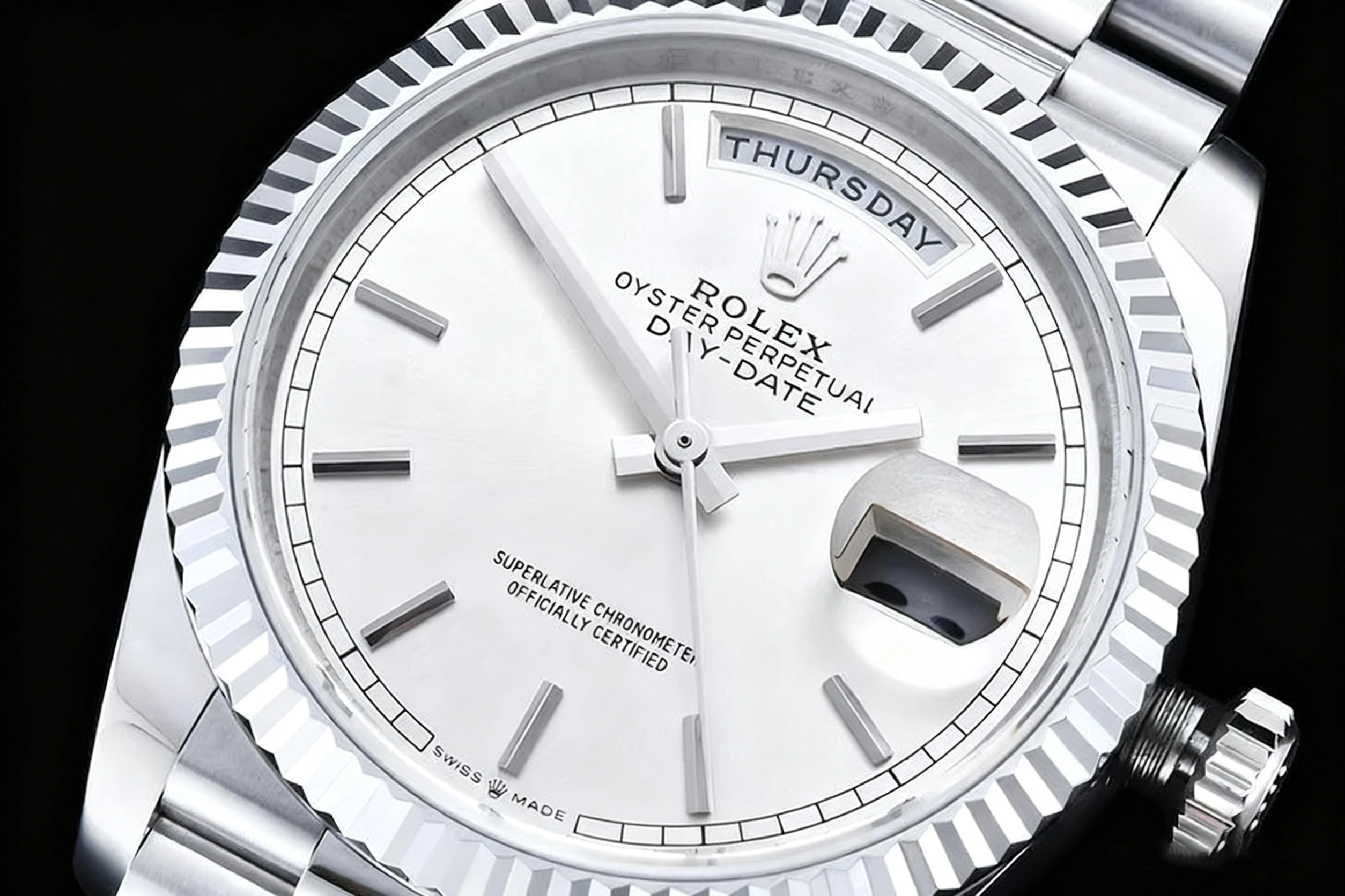 MOVEMENT: Platinum Plated Asia Clone VR3255 Automatic (28800bph) with decorated bridges & plates like the real Rolex Caliber 3255 (Option for A2836 Movement)