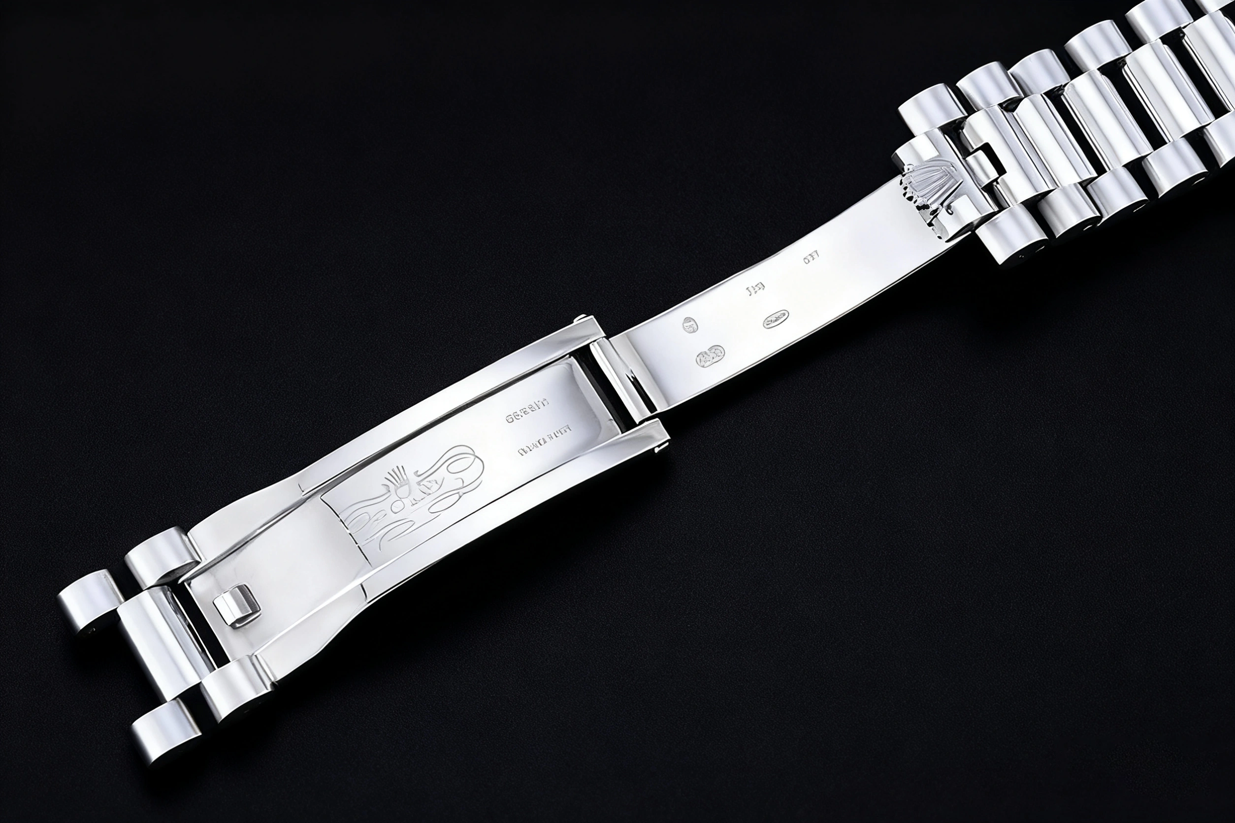 BRACELET: New Style 2 Piece End Link President Stainless Steel 904L Link Bracelet with Single Fold Deployant Clasp with Added Weight