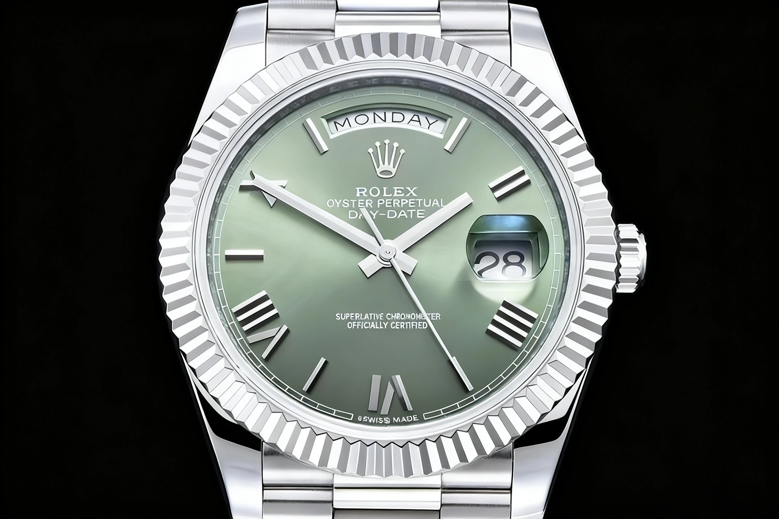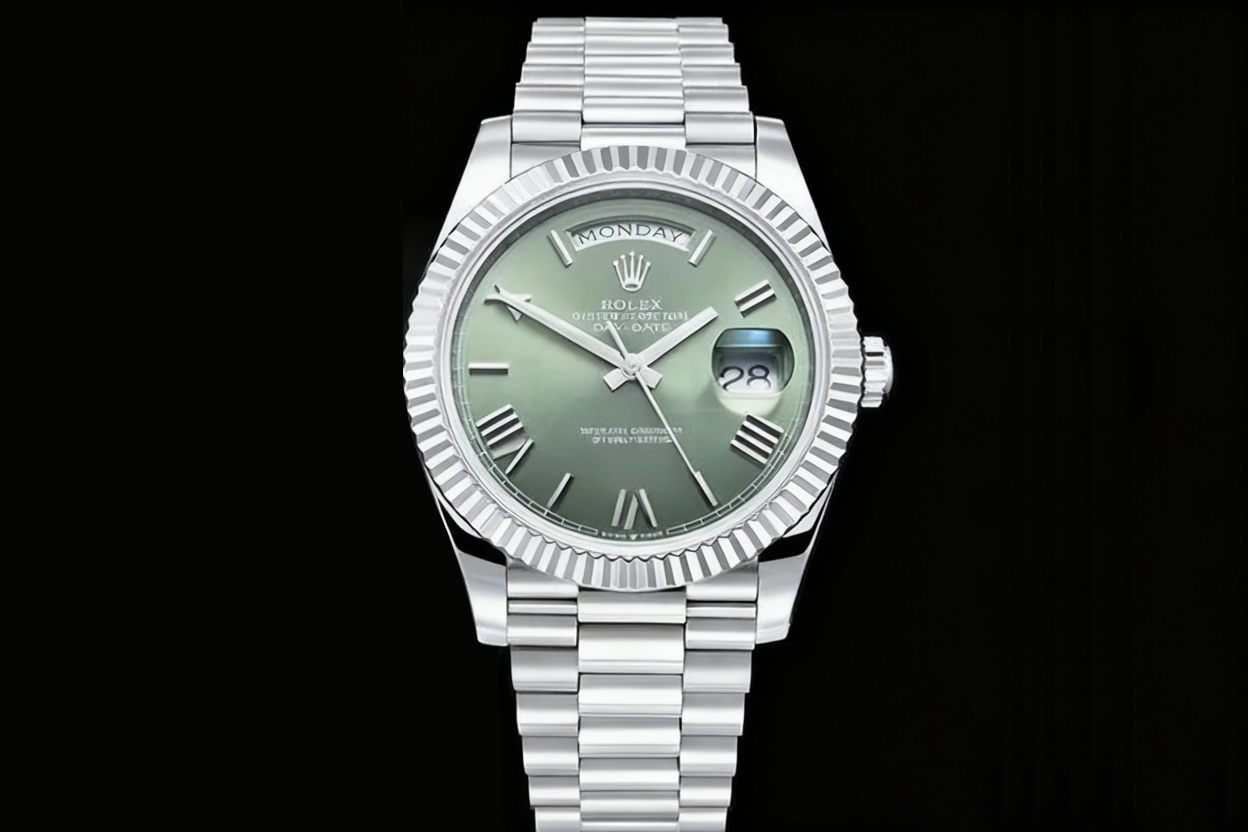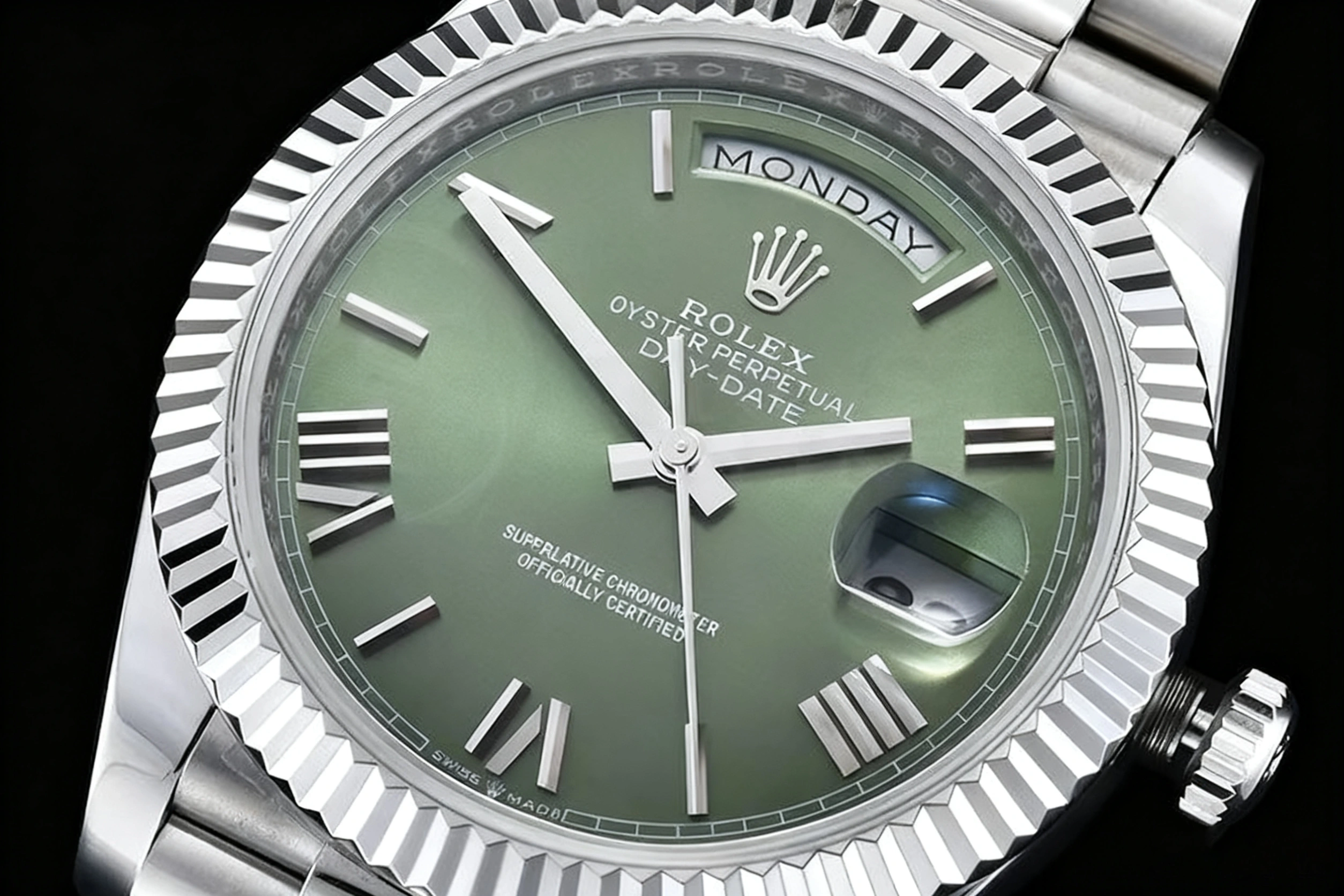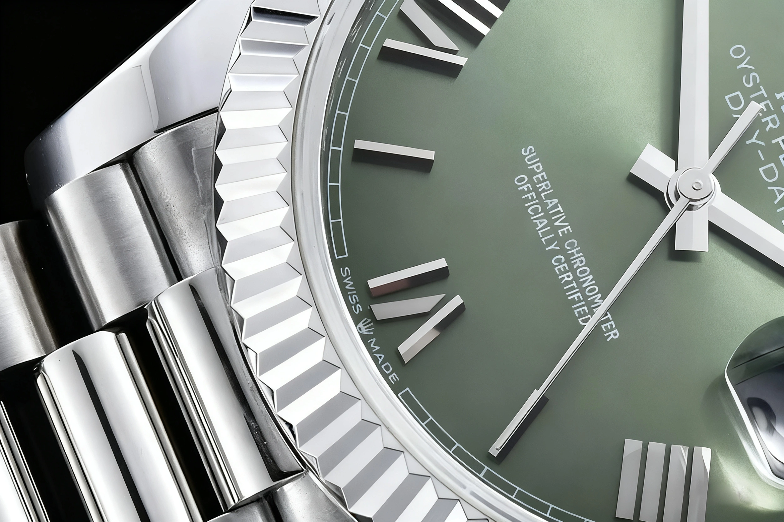DIAL COLOR: Olive Green Dial with Roman Stick Markers