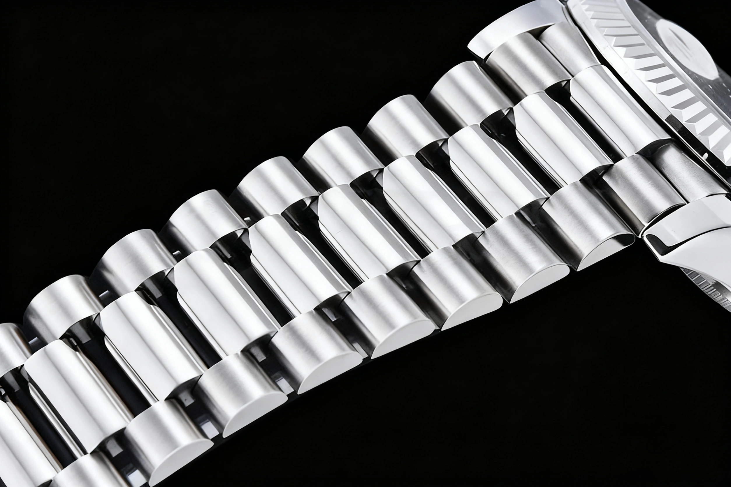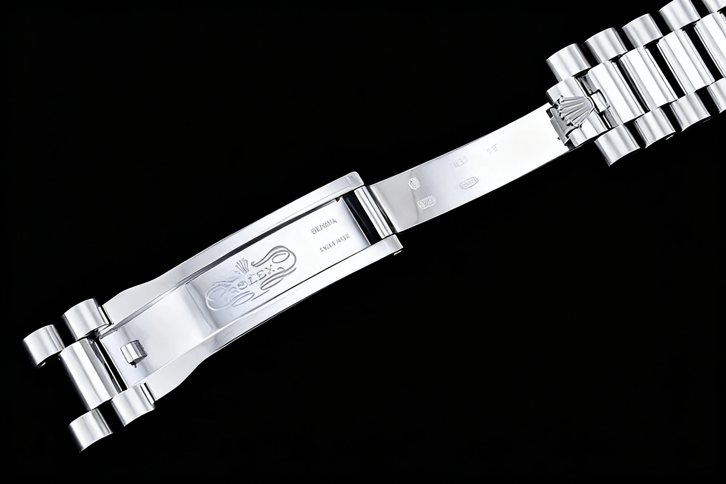 BRACELET: 18K White Gold Plated New Style 2 Piece End Link President Stainless Steel 904L Link Bracelet with Single Fold Deployant Clasp