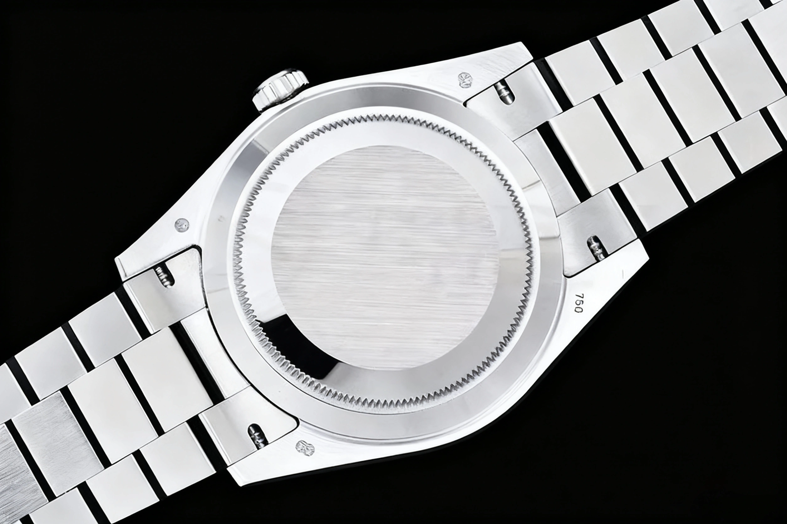 CASE MATERIAL: 18K White Gold Plated High Grade Solid Stainless Steel 904L (with Cu-W metal added to be closer to gen weight)