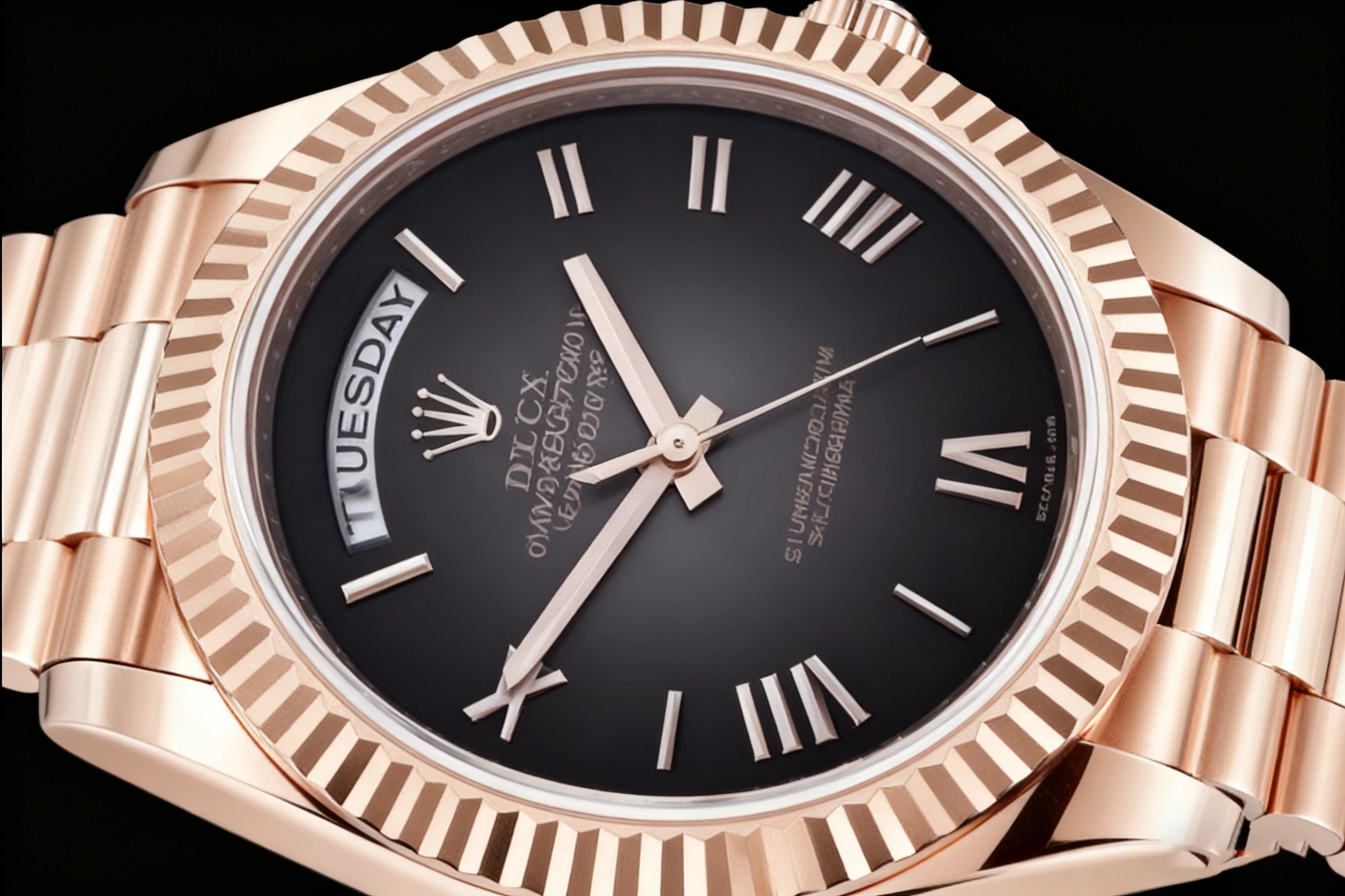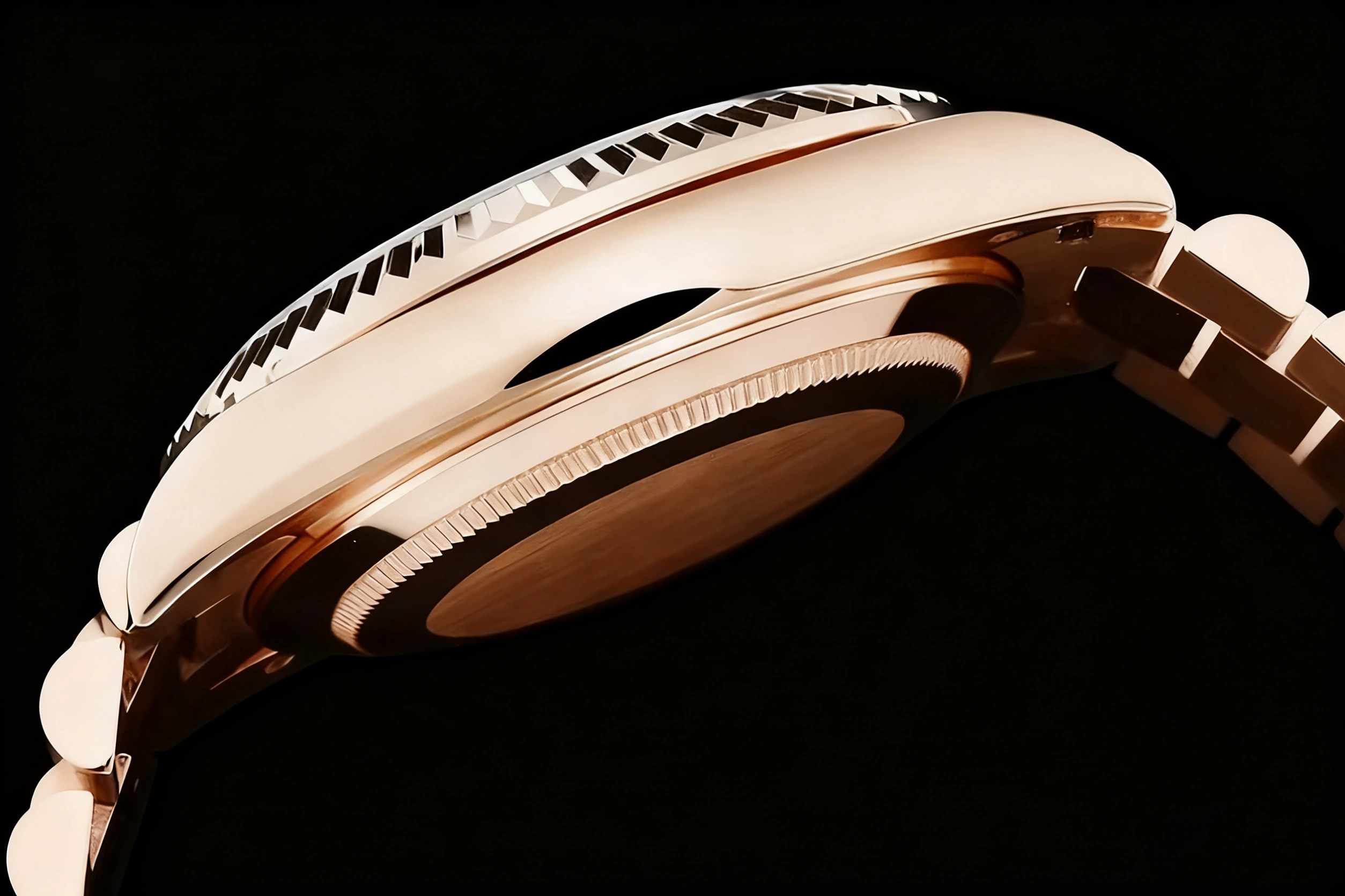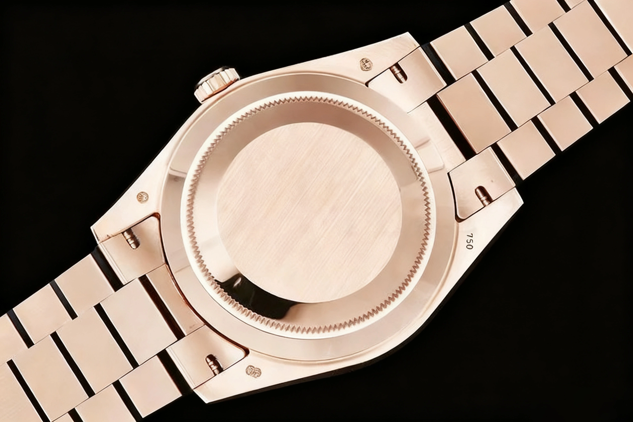 CASE MATERIAL: 18K Rose Gold Plated High Grade Solid Stainless Steel 904L (with Cu-W metal added to be closer to gen weight)