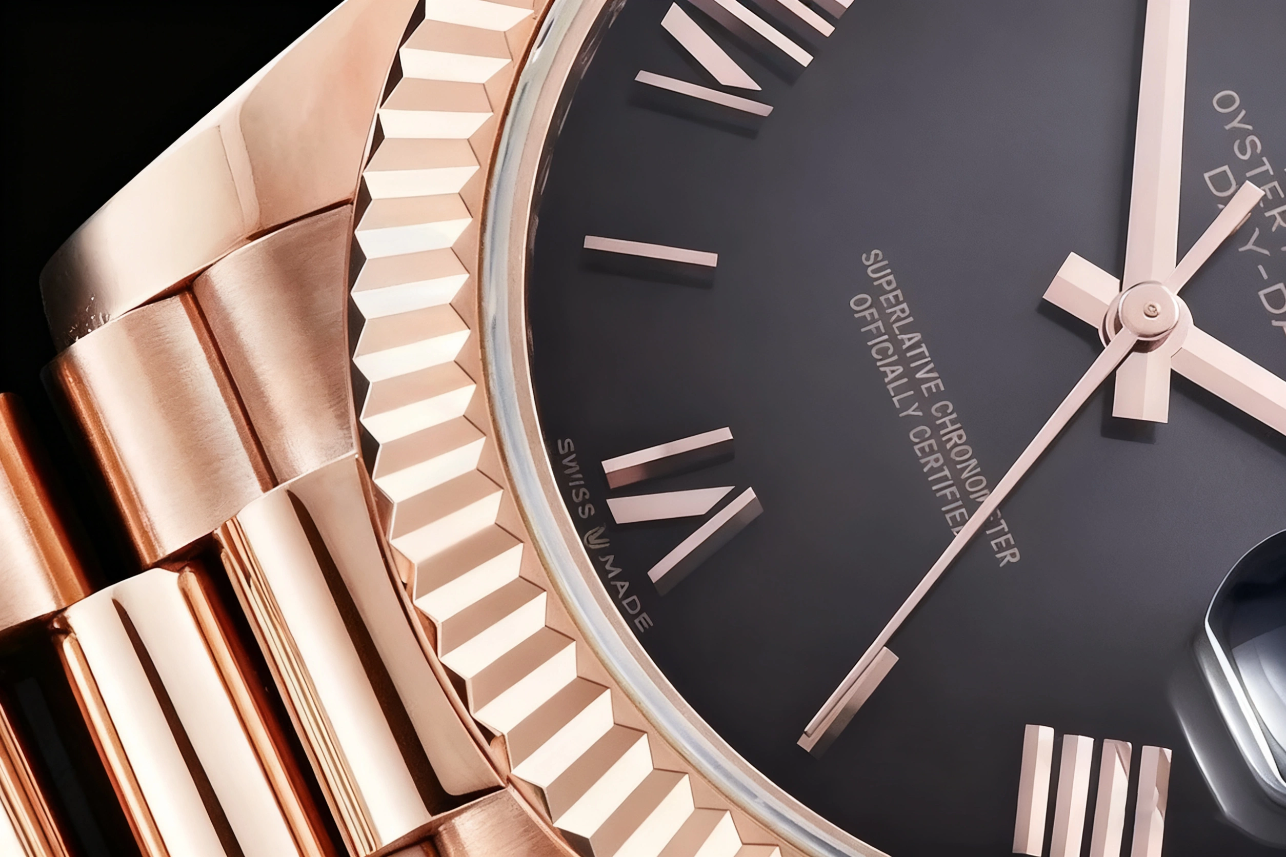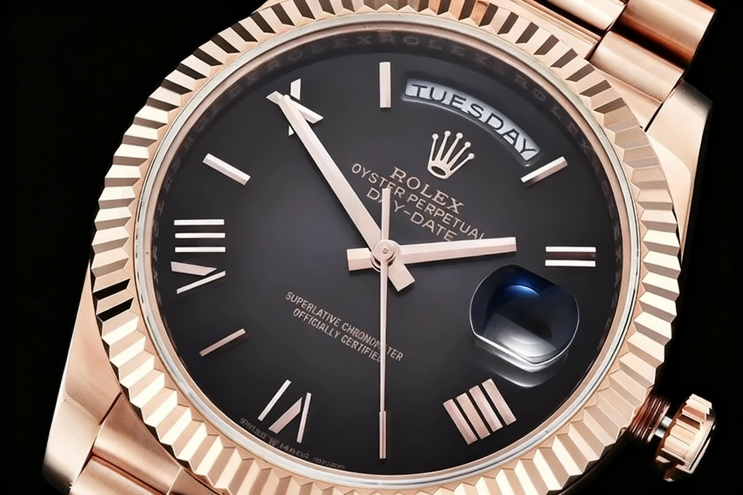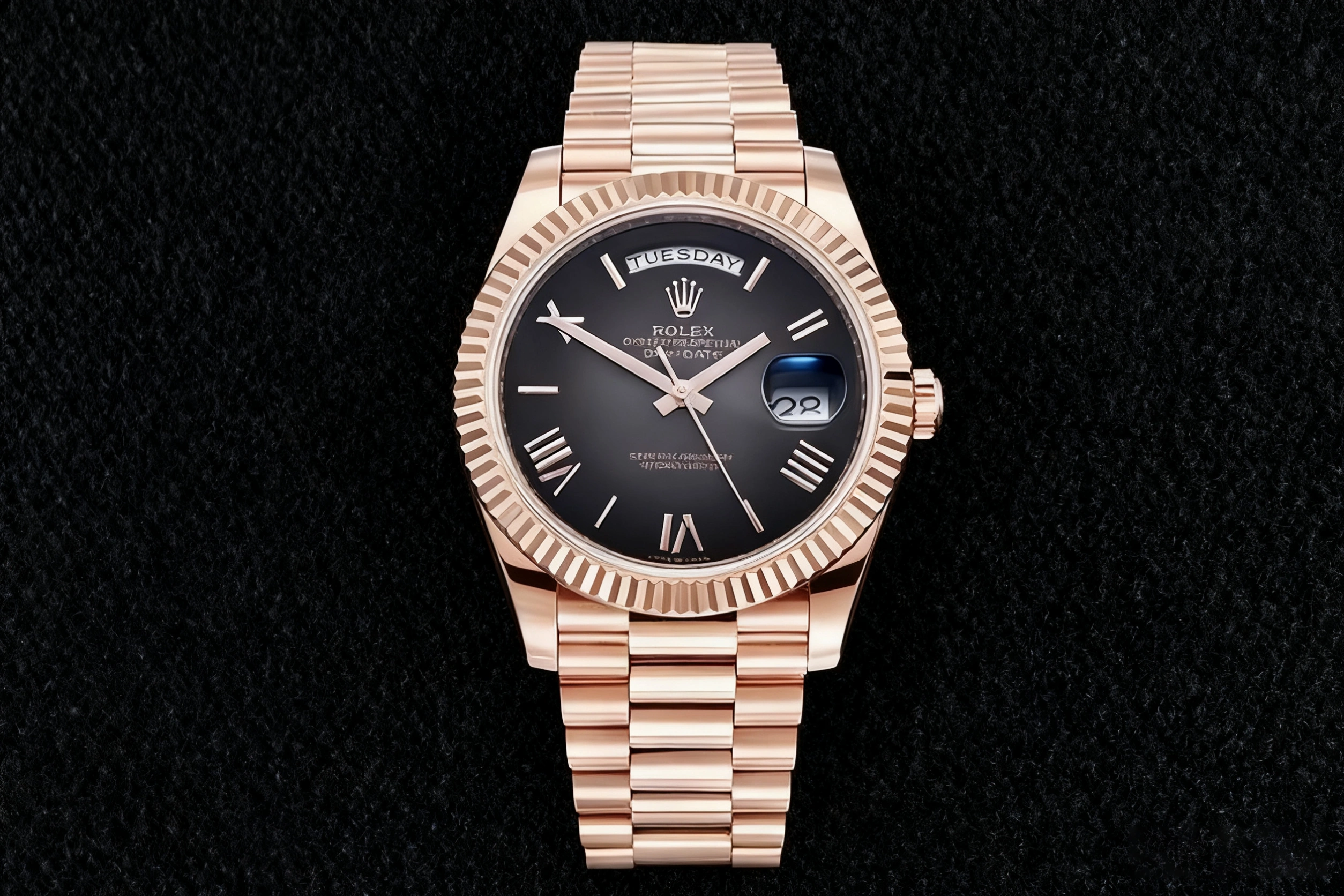 CASE MATERIAL: 18K Rose Gold Plated High Grade Solid Stainless Steel 904L (with Cu-W metal added to be closer to gen weight)
