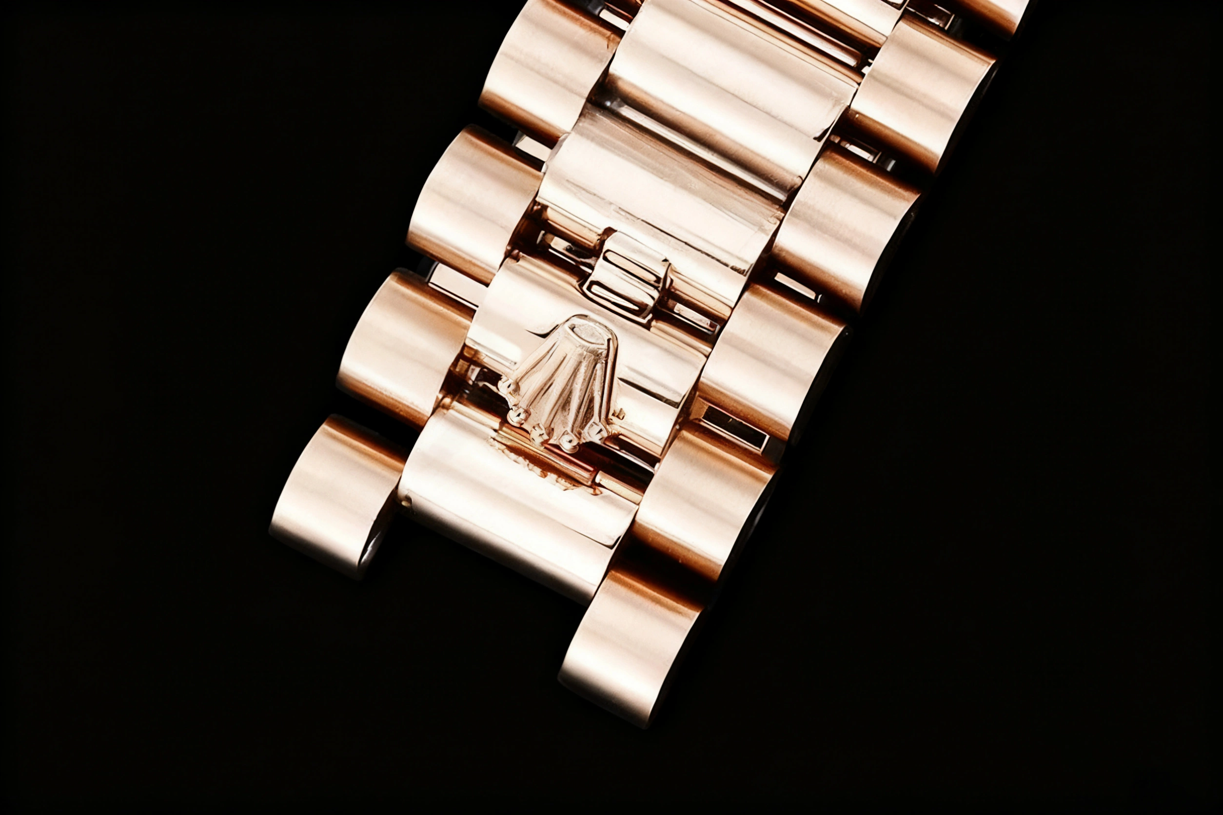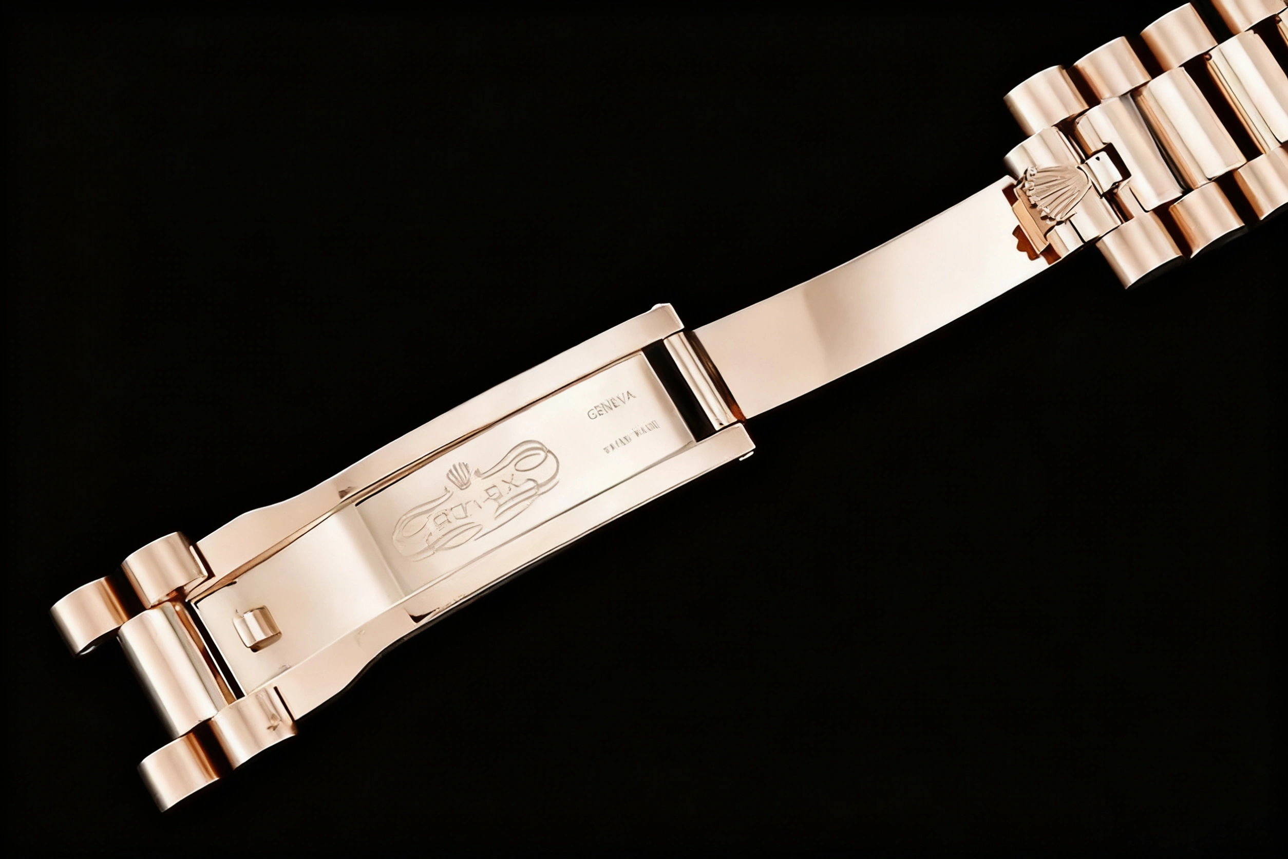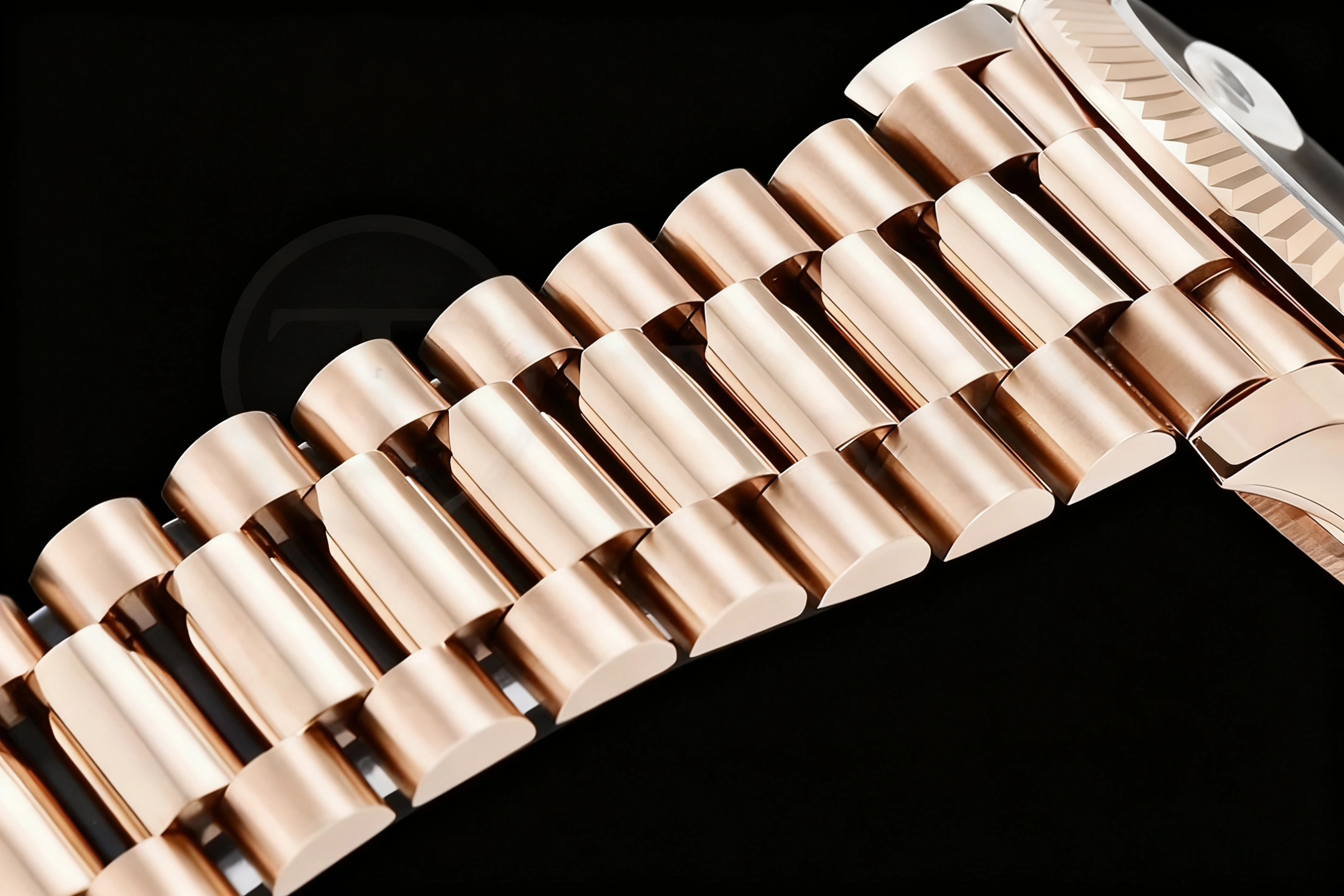 BRACELET: 18K Rose Gold Plated New Style 2 Piece End Link President Stainless Steel 904L Link Bracelet with Single Fold Deployant Clasp