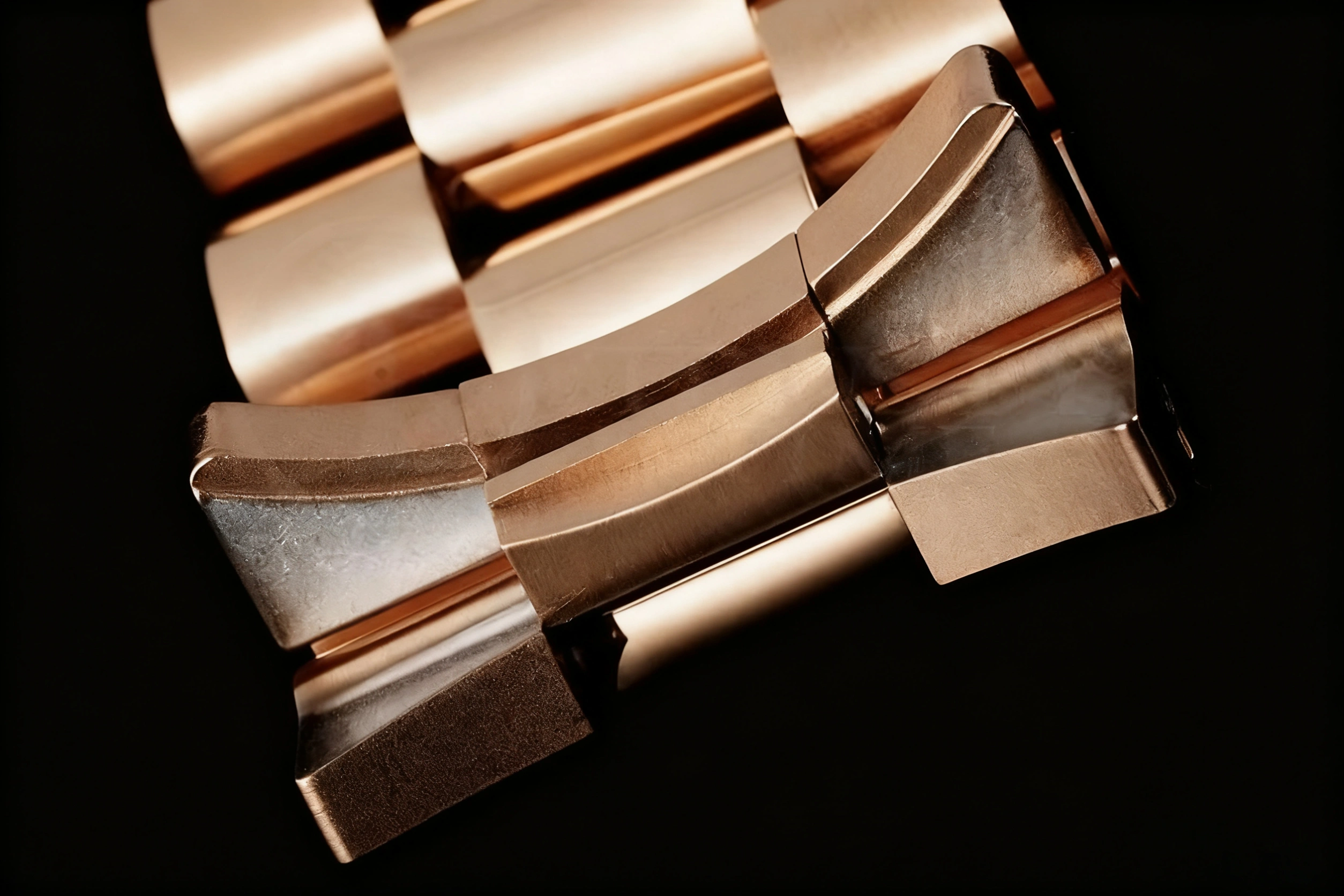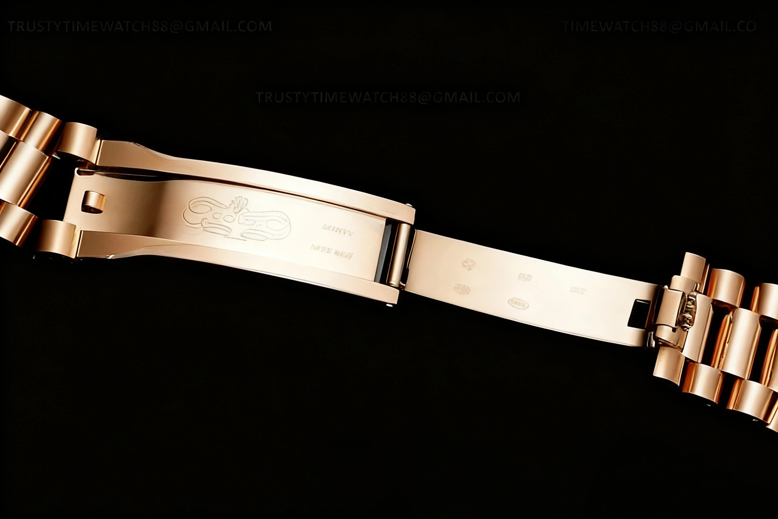 BRACELET: 18K Rose Gold Plated New Style 2 Piece End Link President Stainless Steel 904L Link Bracelet with Single Fold Deployant Clasp with Added Weight
