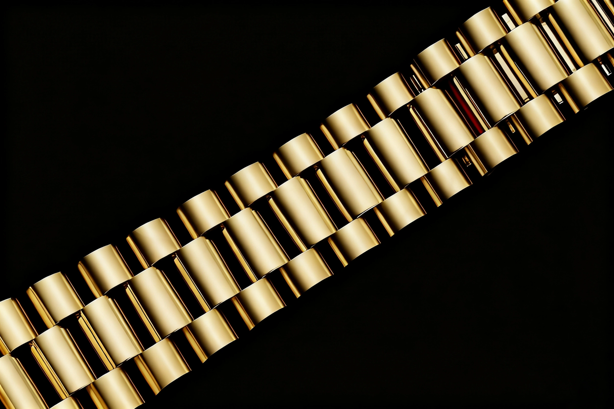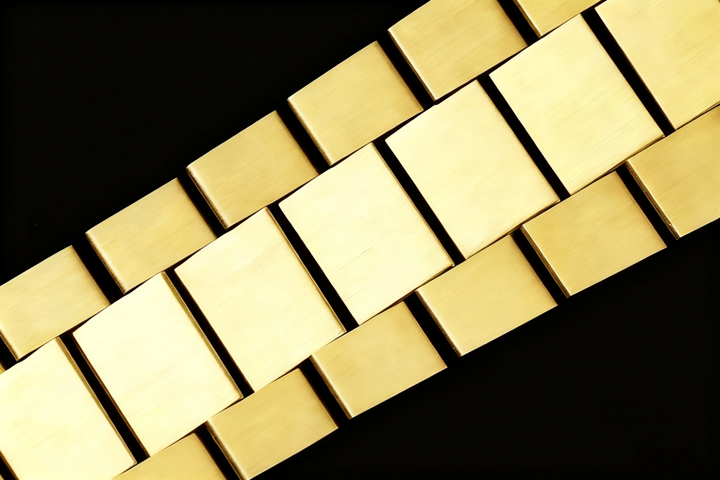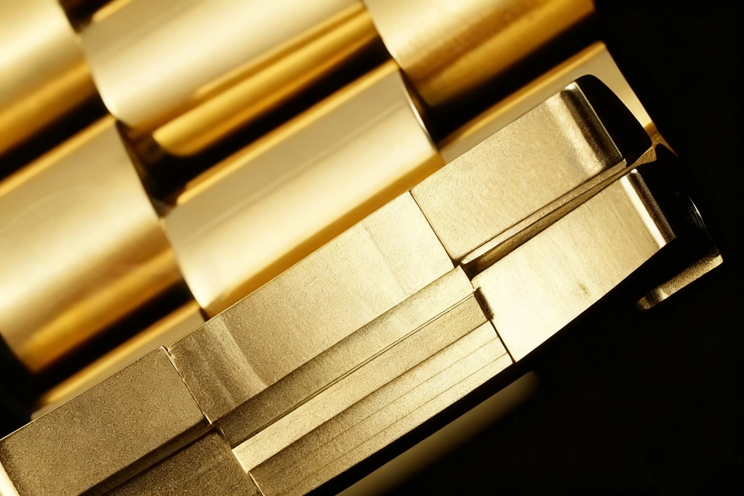 BRACELET: 18K Yellow Gold Plated New Style 2 Piece End Link President Stainless Steel 904L Link Bracelet with Single Fold Deployant Clasp with Added Weight