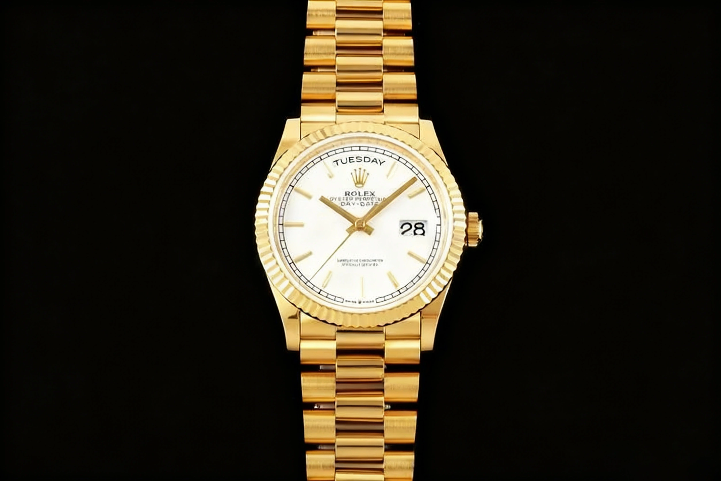 CASE MATERIAL: 18K Yellow Gold Plated High Grade Solid Stainless Steel 904L with Added Weight