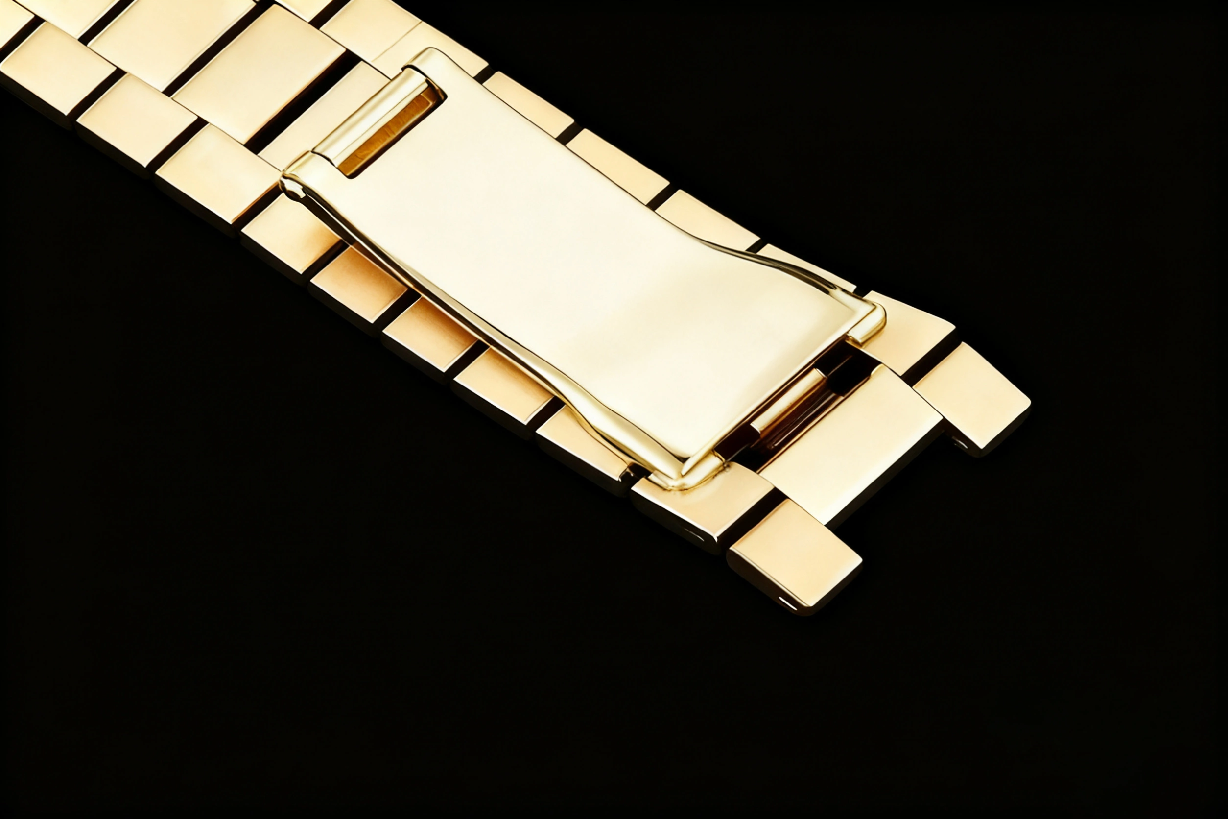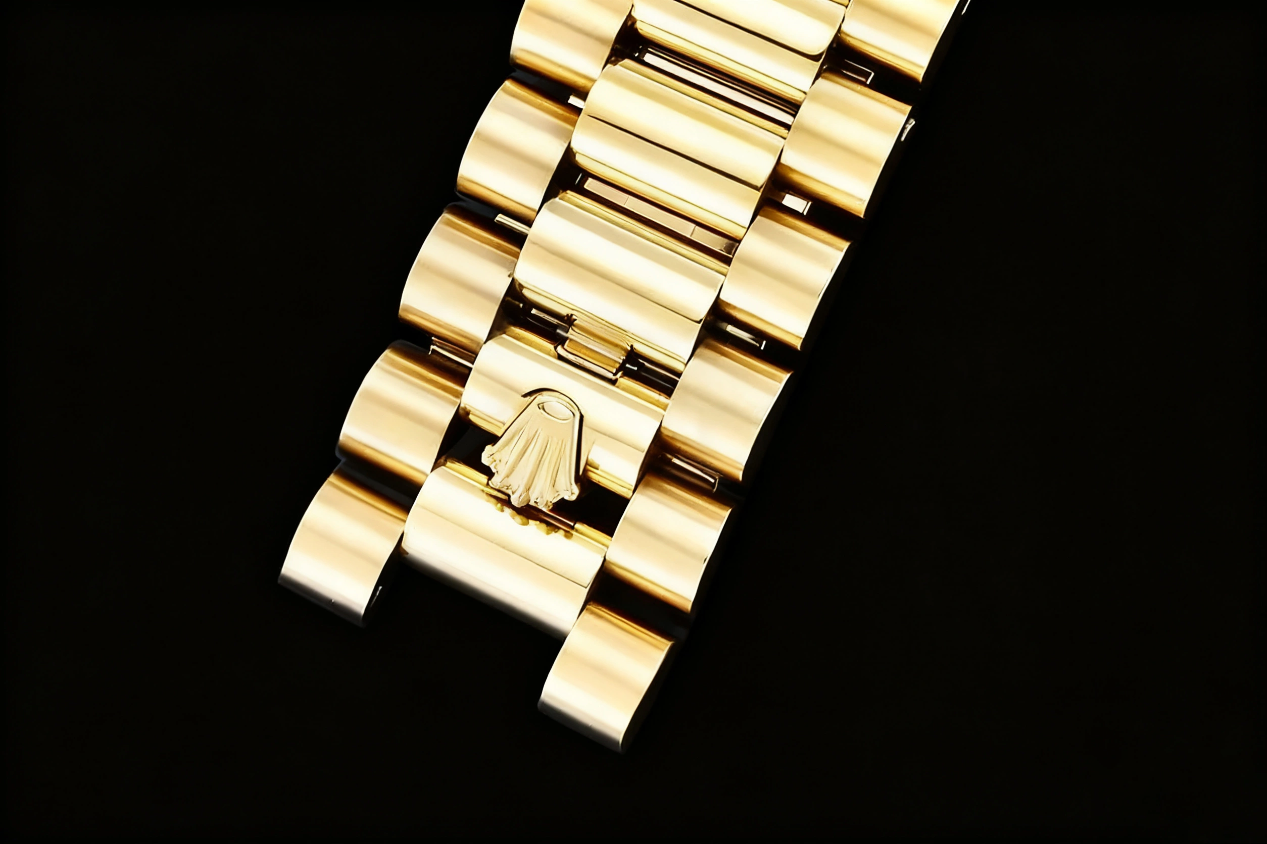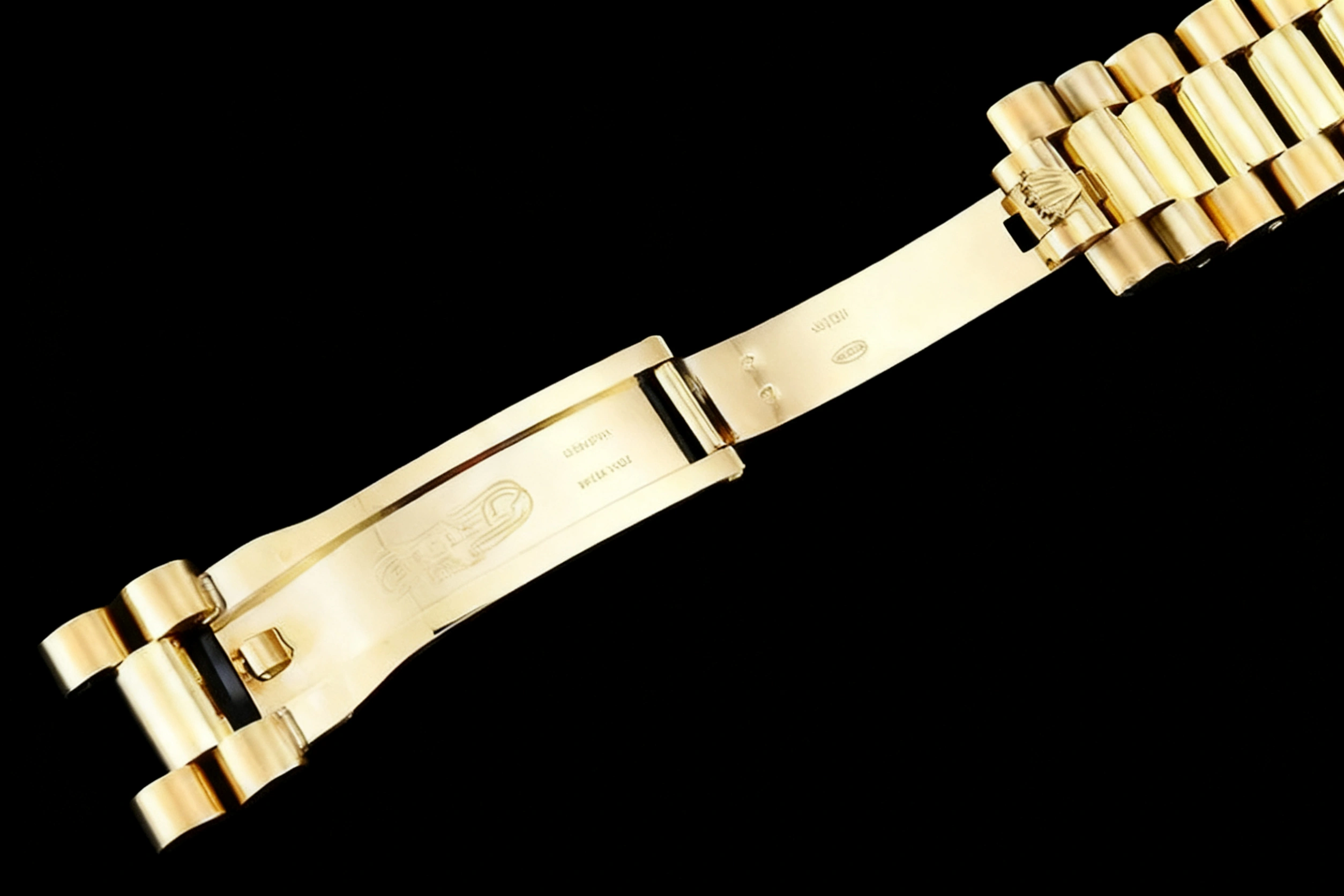 BRACELET: 18K Yellow Gold Plated New Style 2 Piece End Link President Stainless Steel 904L Link Bracelet (added weight) with Single Fold Deployant Clasp