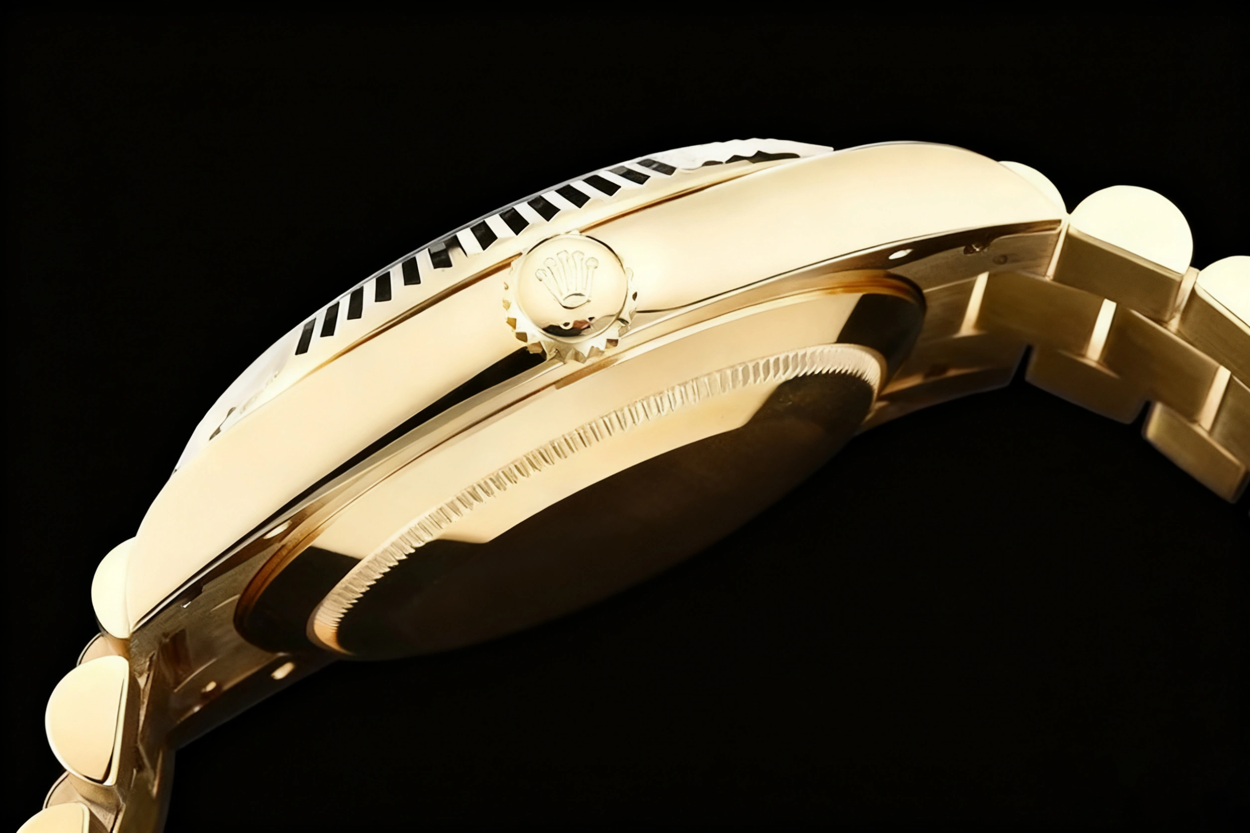 CASE MATERIAL: 18K Yellow Gold Plated on High Grade Solid Stainless Steel 904L with added weight