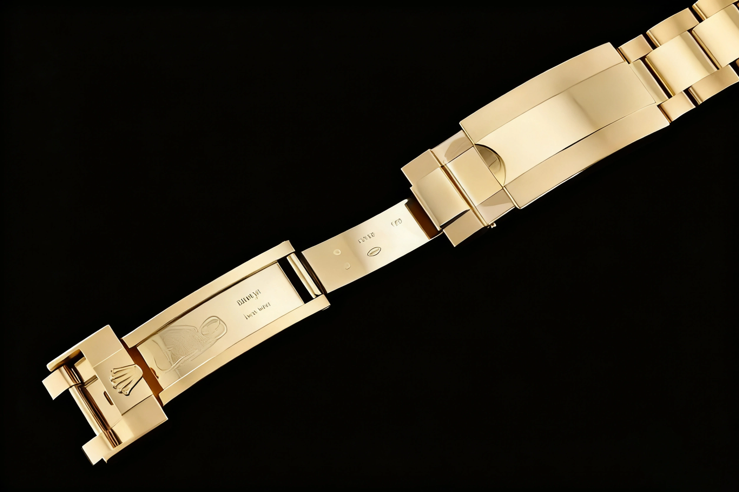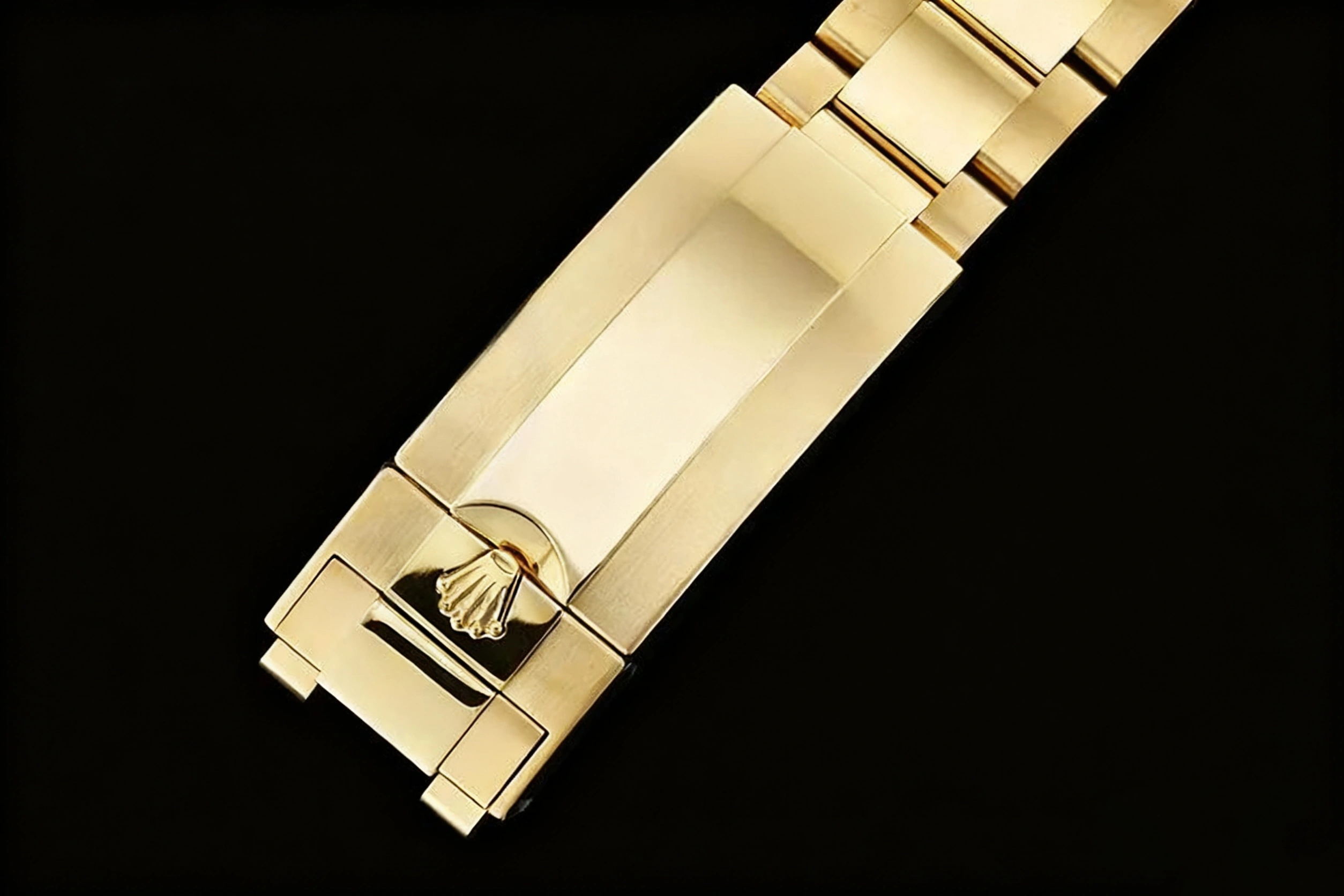 BRACELET: 18K Yellow Gold Thick Plated (5 mils) on Solid Stainless Steel 904L with Flip Lock Deployant Buckle (Midlinks sides are also plated with gold)