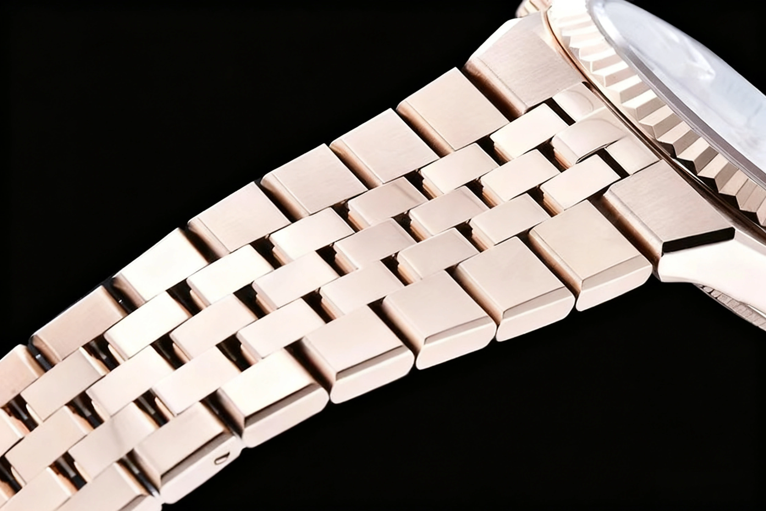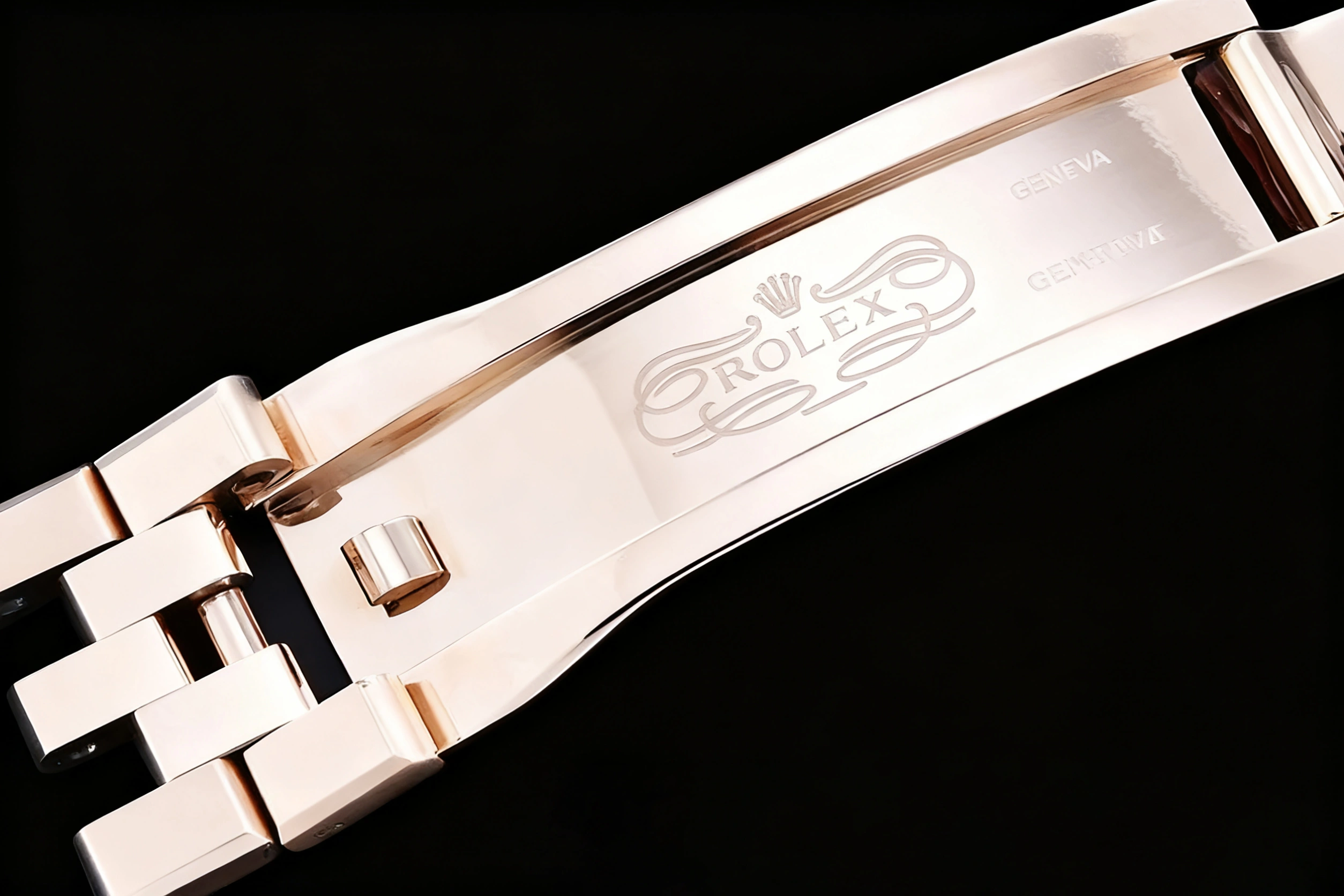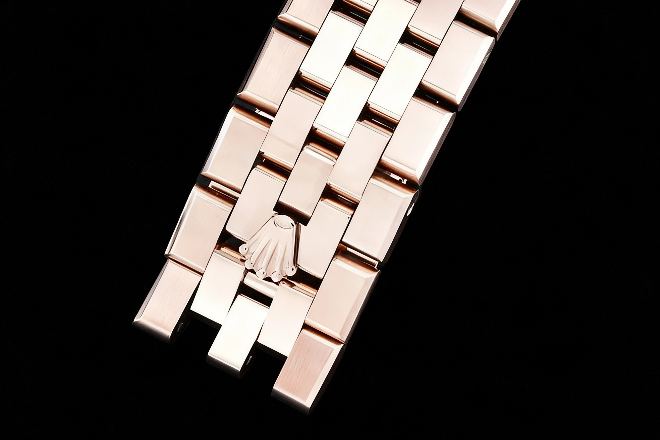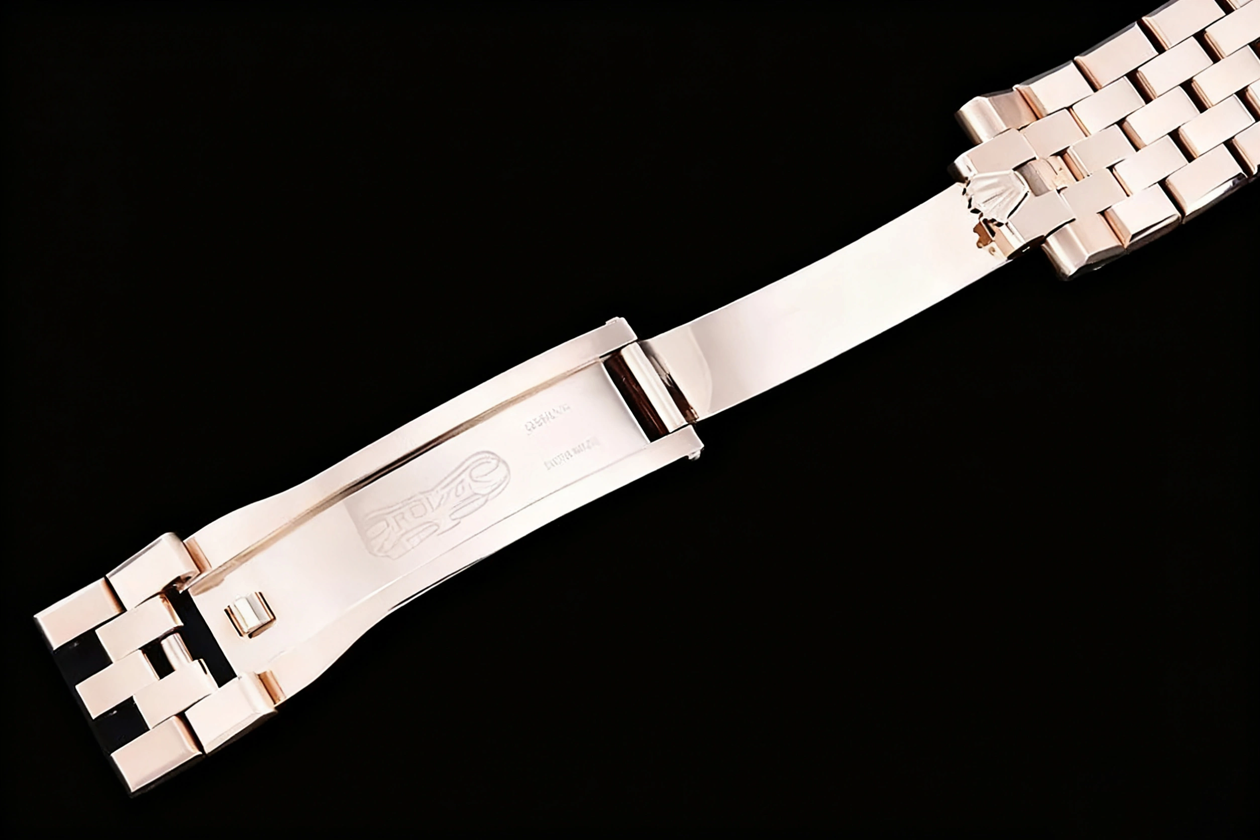 BRACELET: 18K Rose Gold Plated Solid Stainless Steel 316F Flat Jubilee Bracelet with Folding Crownclasp Deployant Buckle