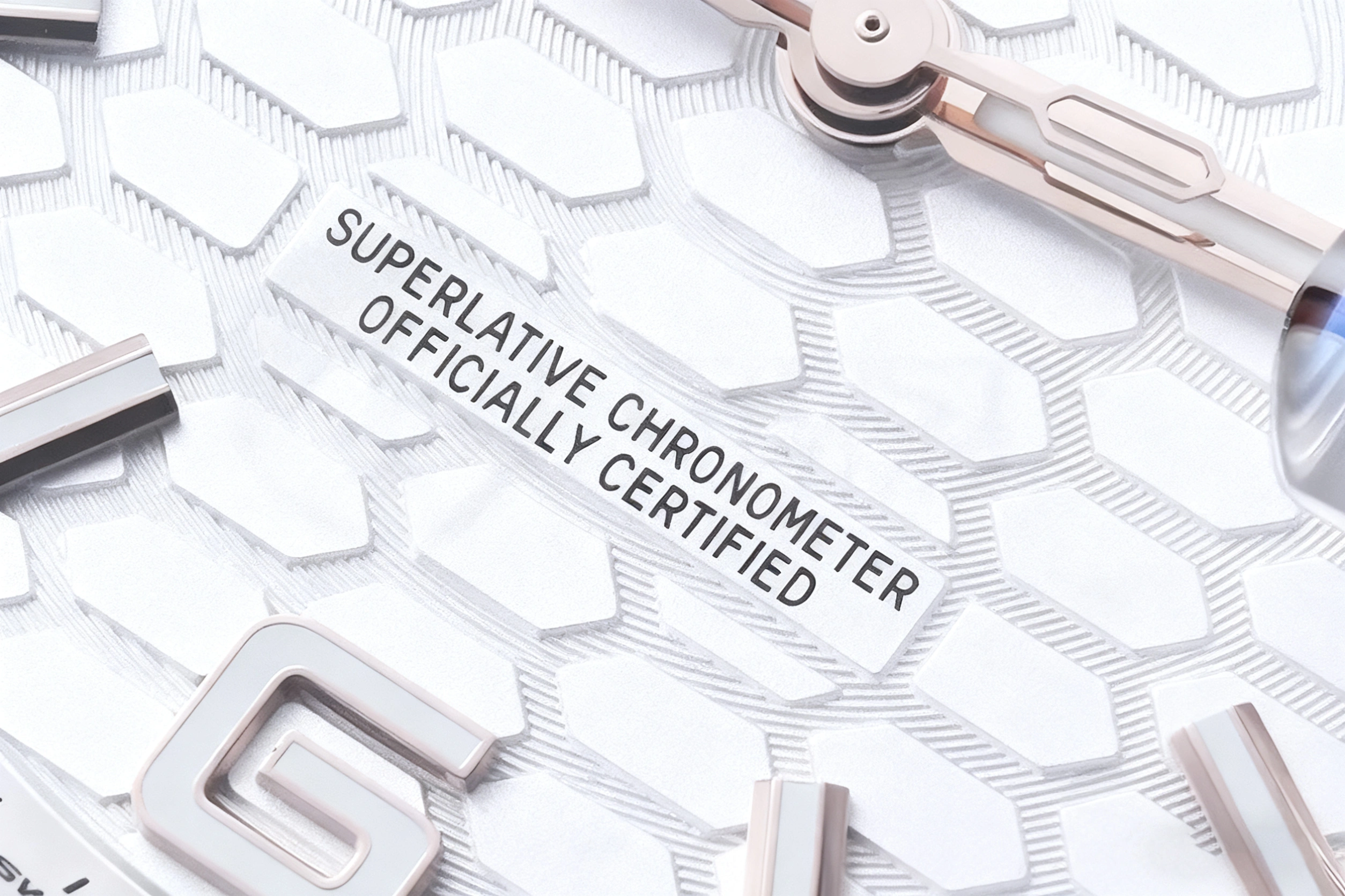 DIAL COLOR: Honeycomb Motif White Dial with Large 3,6,9 & Stick Markers