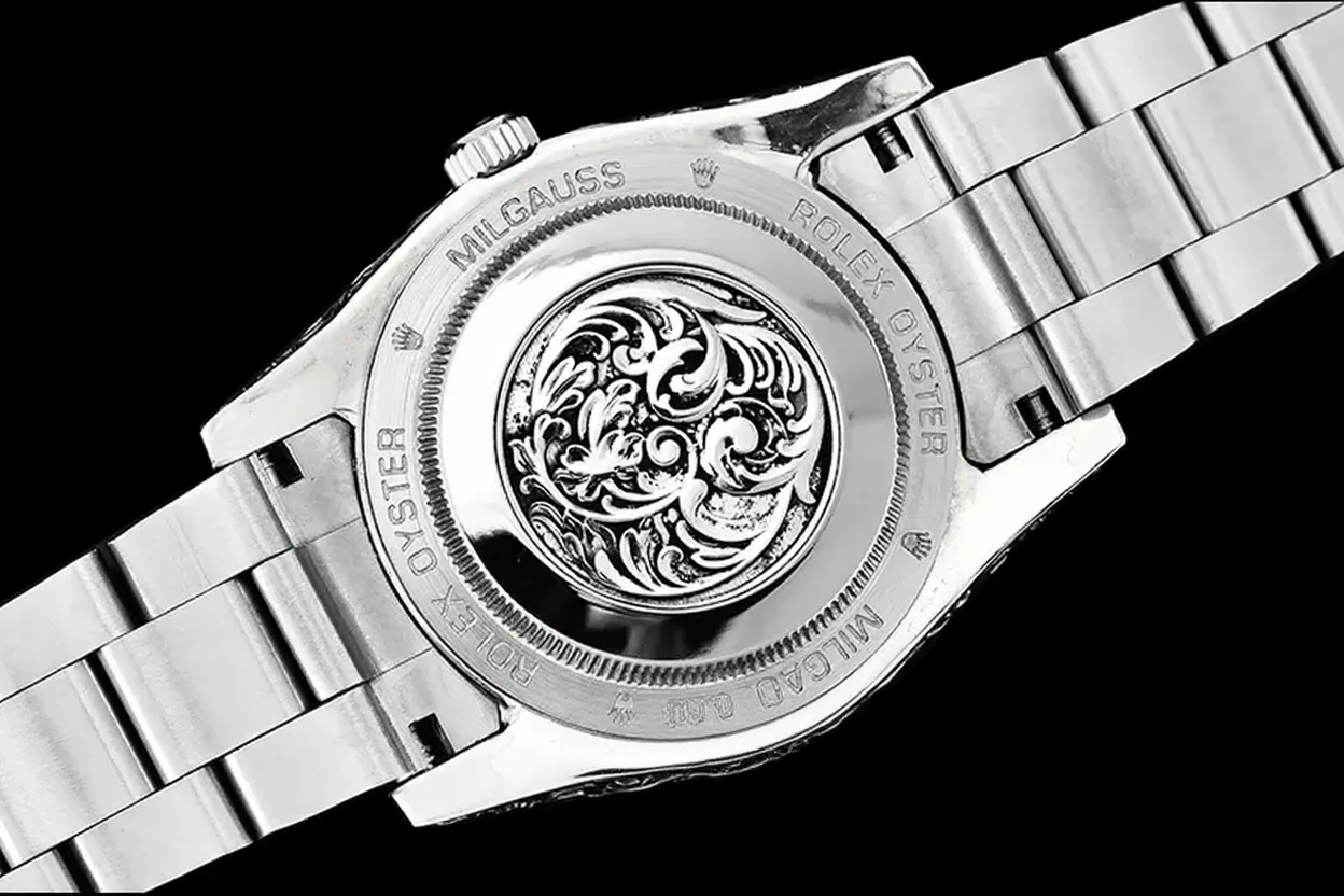 CASE BACK: Solid case back with Detailed Special Pattern Engraving
