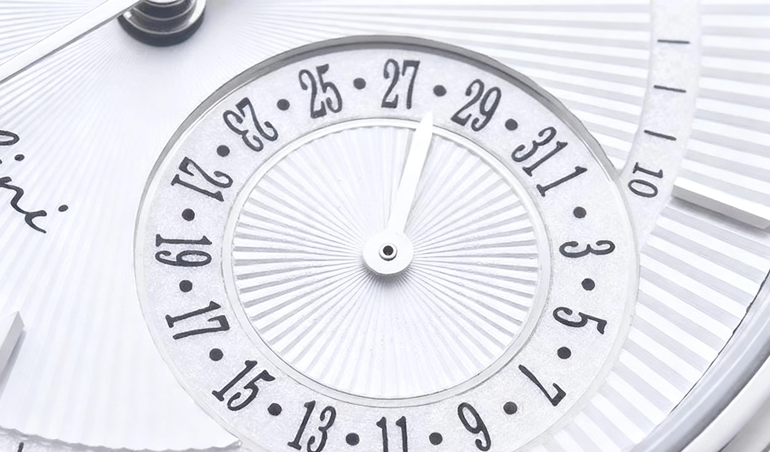 DATE INDICATOR: At 3:00 Subdial (Adjusted via crown)