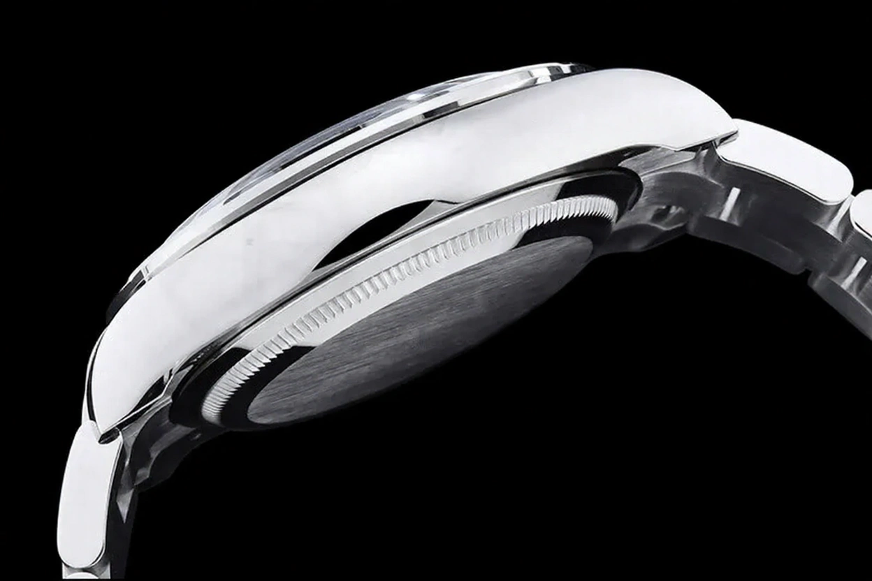 FRONT GLASS: Sapphire Crystal, Same Thickness and Height above bezel as per Genuine (Etched Rolex emblem at 6:00 on the sapphire glass)