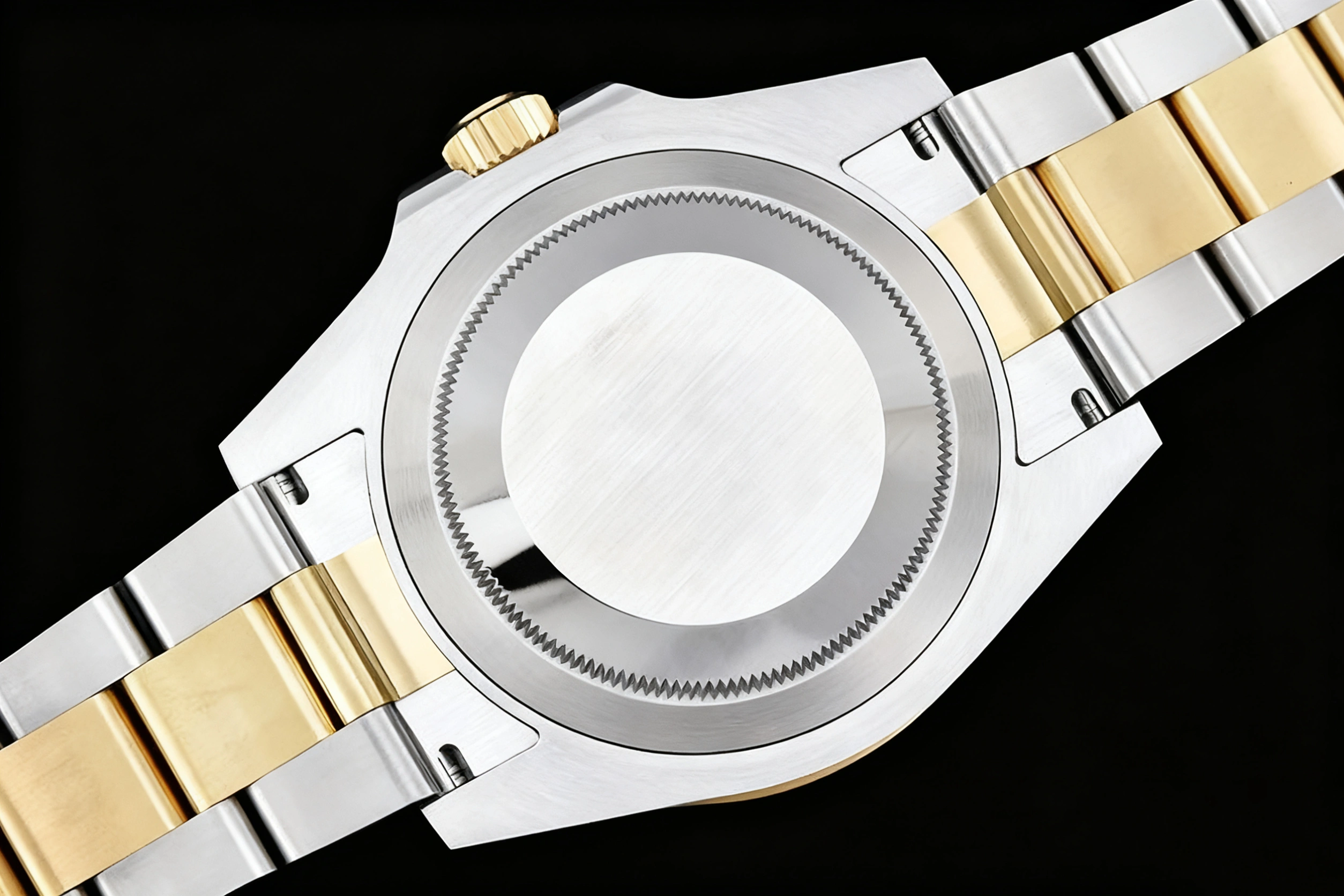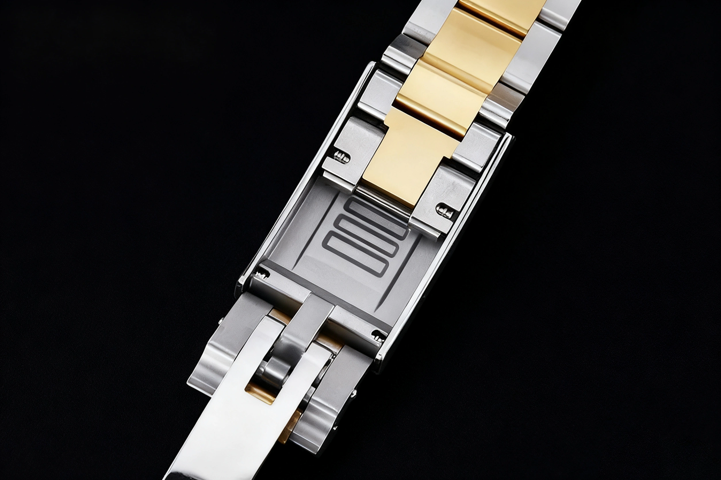 CASE MATERIAL: Two Tone 18K Yellow Gold Thick Plated (5 mils) on Solid Stainless Steel 904L