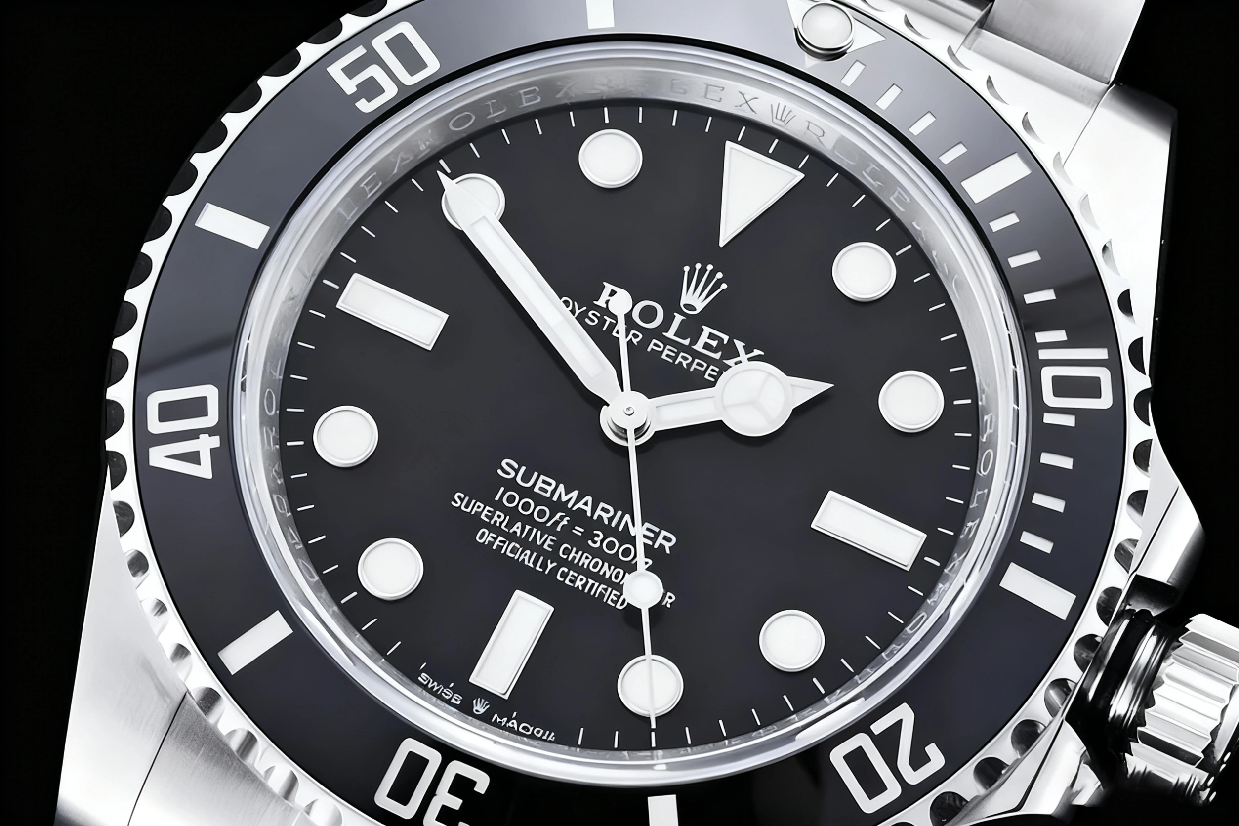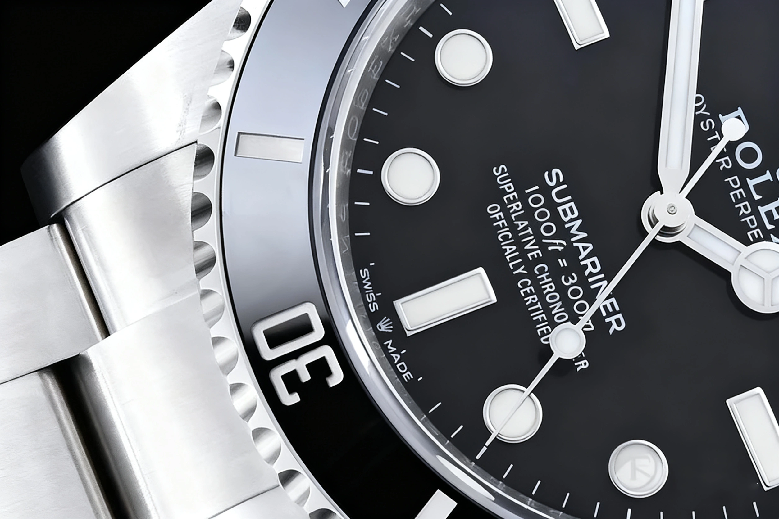 BEZEL: Black Uni-directional Diver Ceramic Bezel, Anti-Clockwise (With Superlume on Bezel Dot)