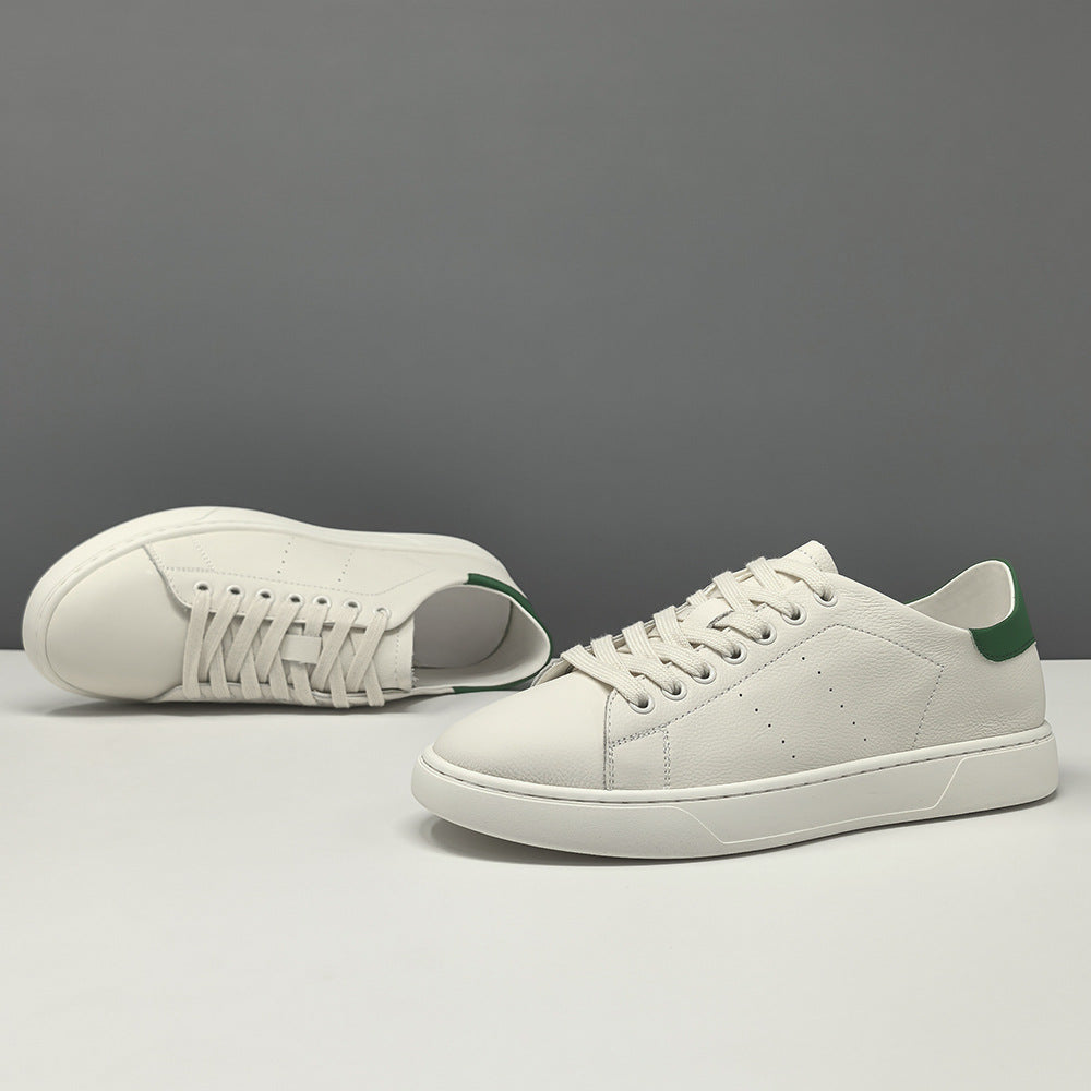 Men's casual low - top sneakers made of top - grain leather, offering breathability and style for spring and summer.
