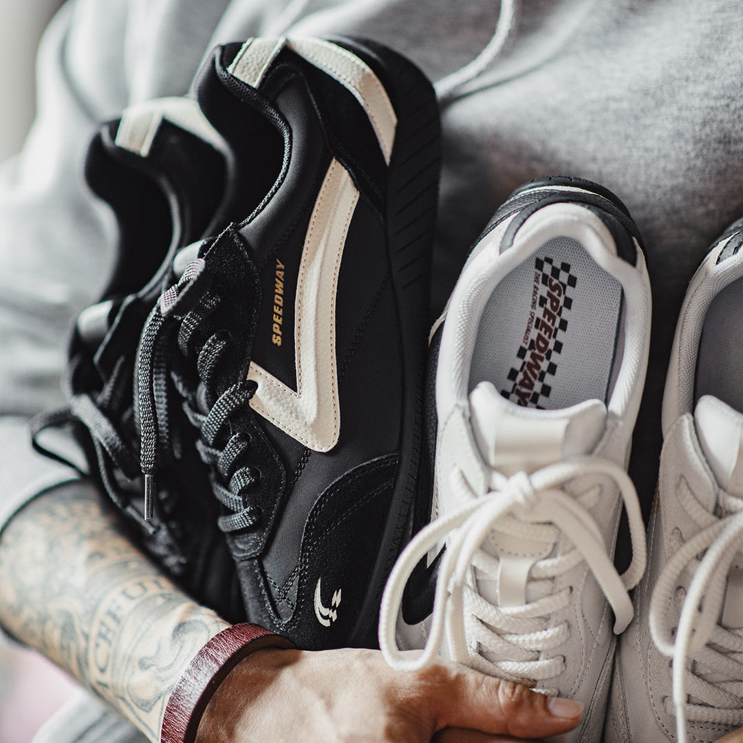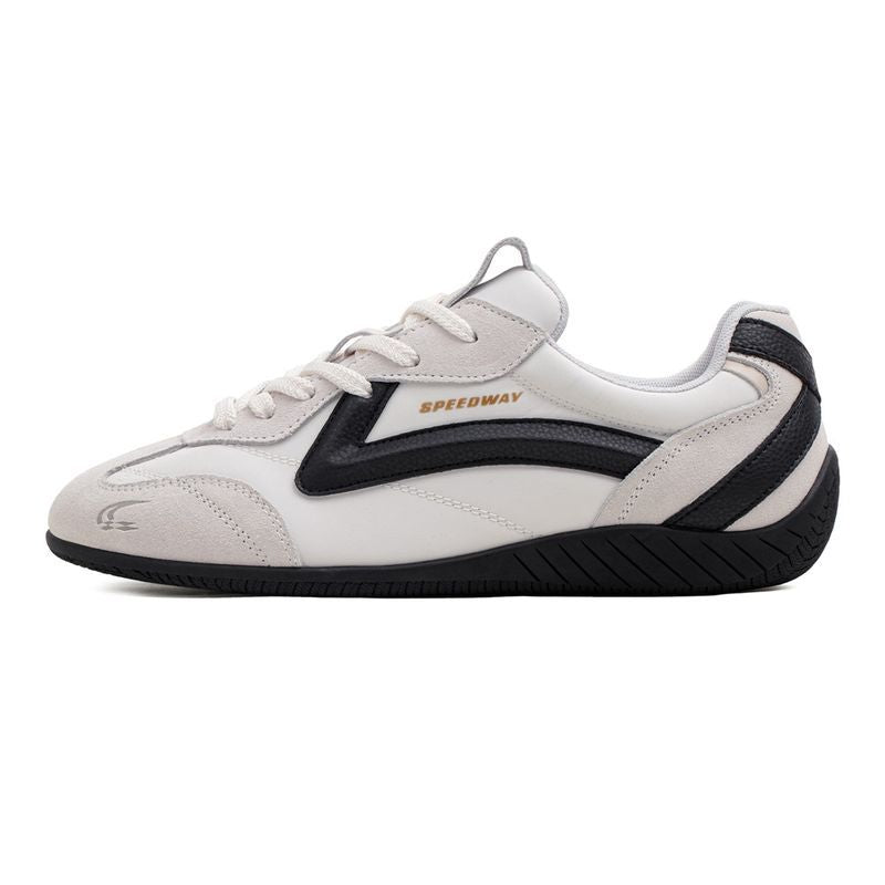 Rev up your style with these Men's Retro Racing - Inspired Sneakers. Born from F1 track heritage, they blend speed and passion. Featuring a classic thin sole, low - top design, and streamlined silhouette, plus a 3D arc arrow on the side for a “SPEED” vibe. Breathable and versatile for all seasons, they’re perfect for sporty casual looks.