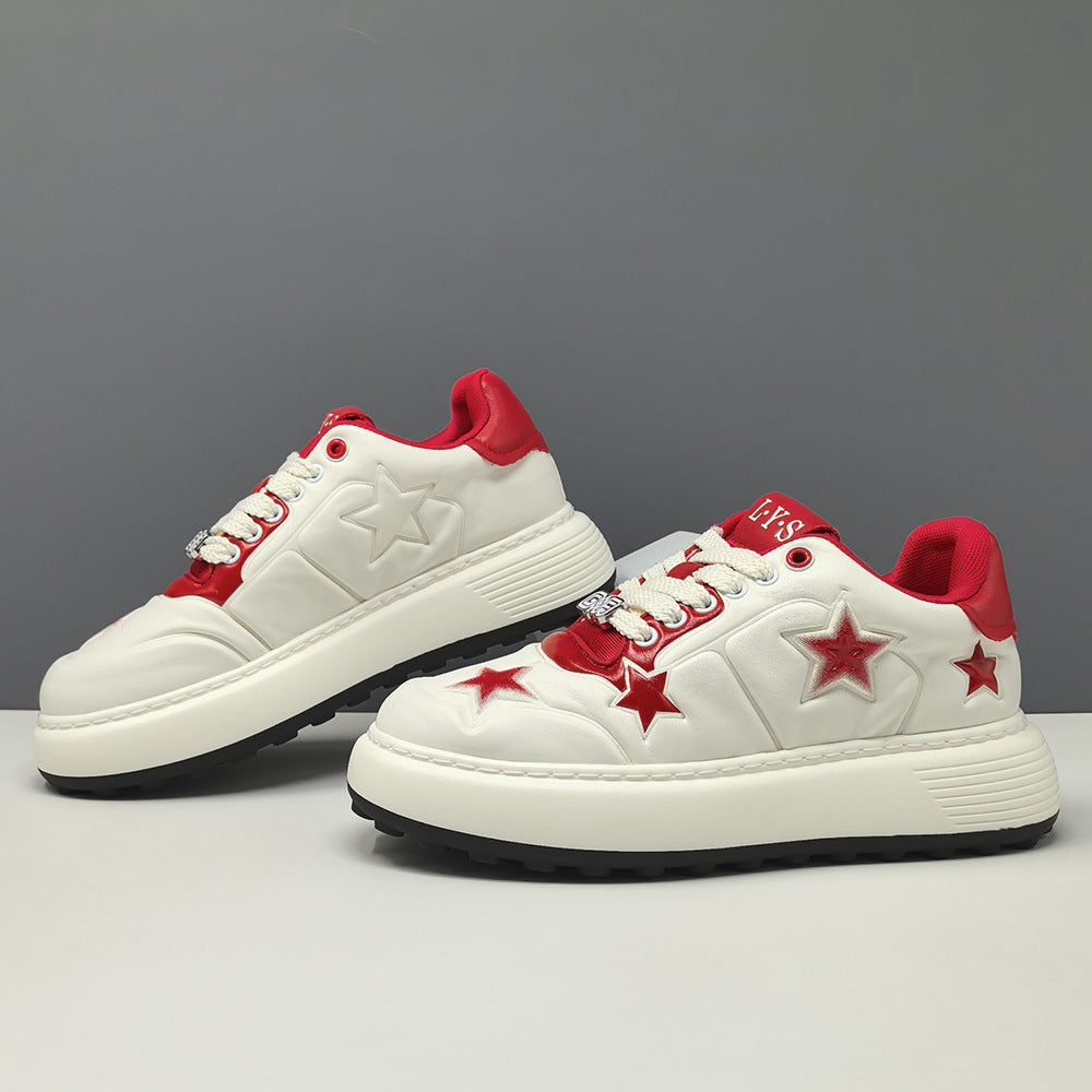 • Men's Stylish Embossed Leather Flat Court Sneakers