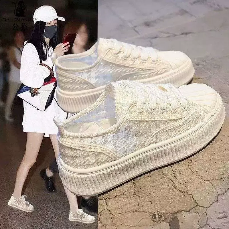 White sneakers, a hot-selling style for summer 2025, breathable mesh casual women's shoes, versatile mesh shoes.