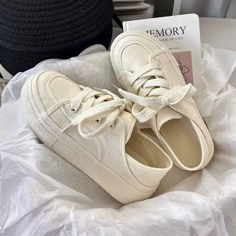 • 2025 New Chic Spring/Summer Niche Student Korean Style Slip-on Round Toe White Sneakers