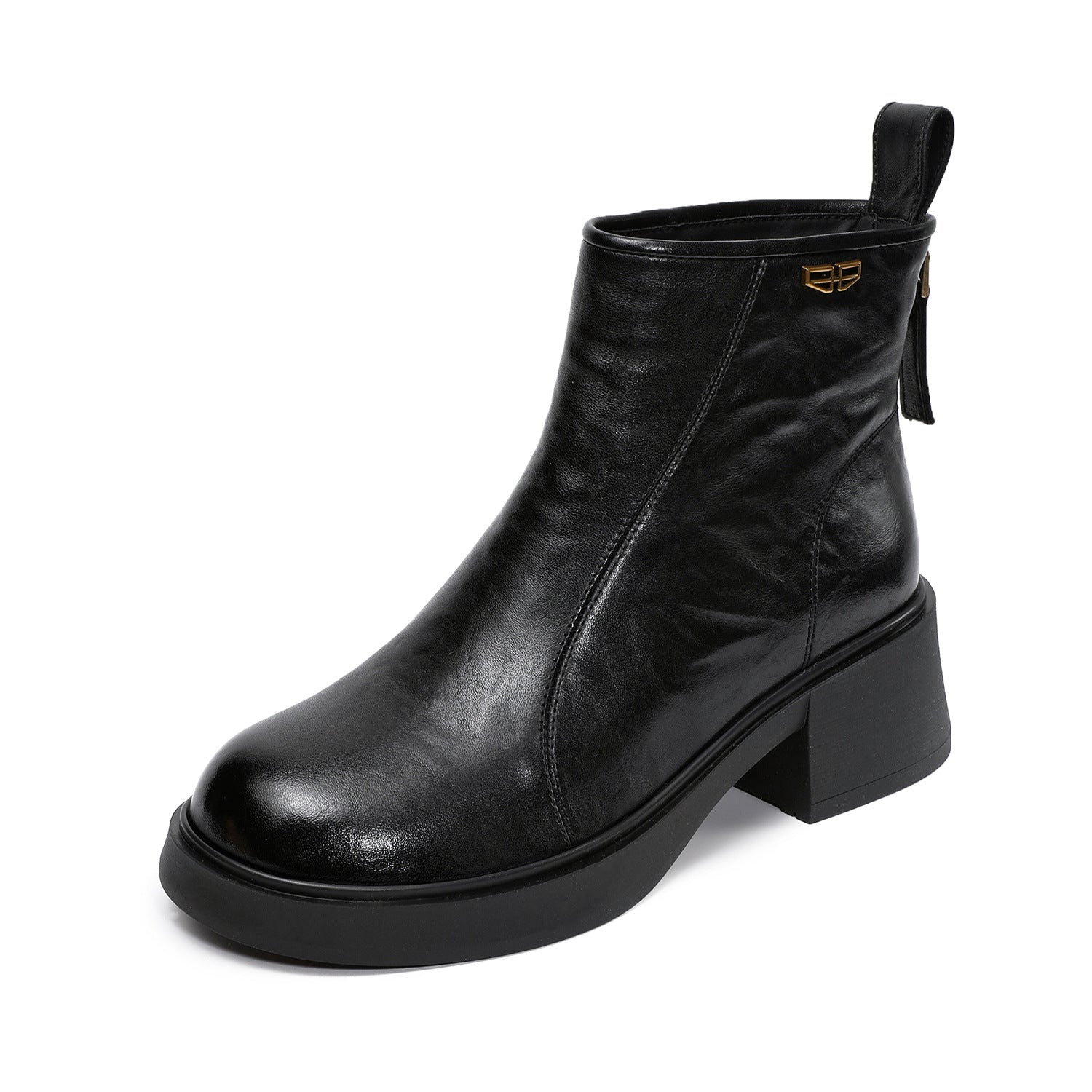 Women's Plain Leather Furred Winter Ankle Boots