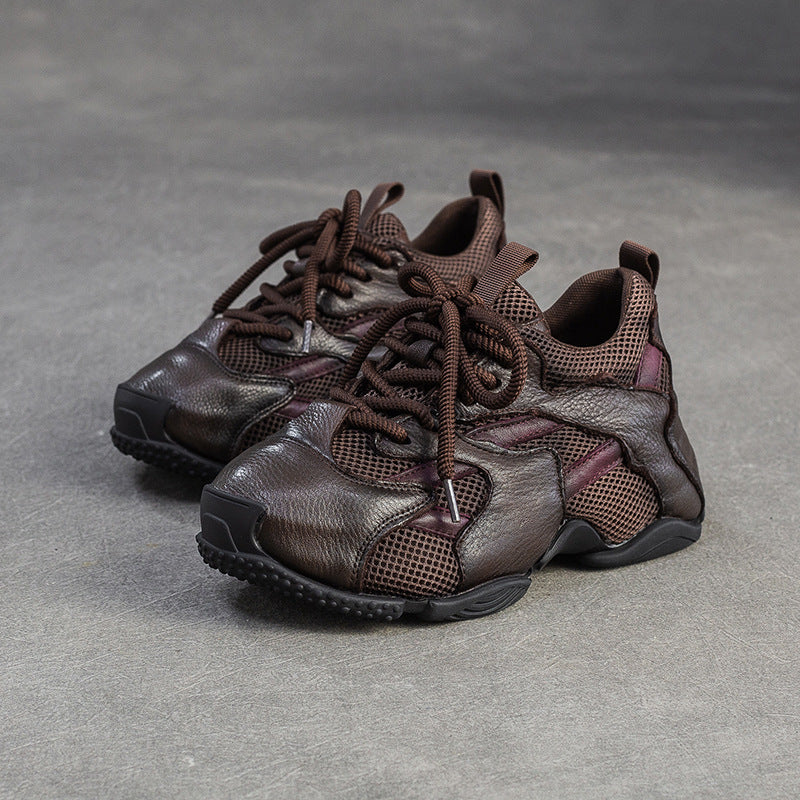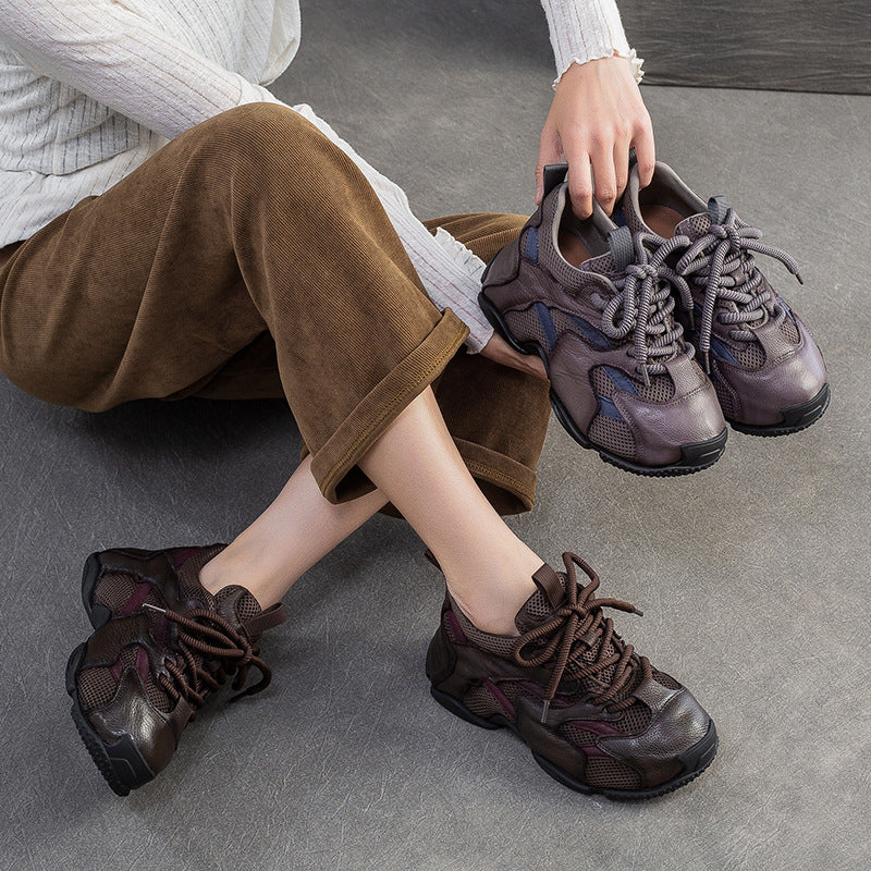 Women's Retro Breathable Mesh Leather Flat Casual Shoes