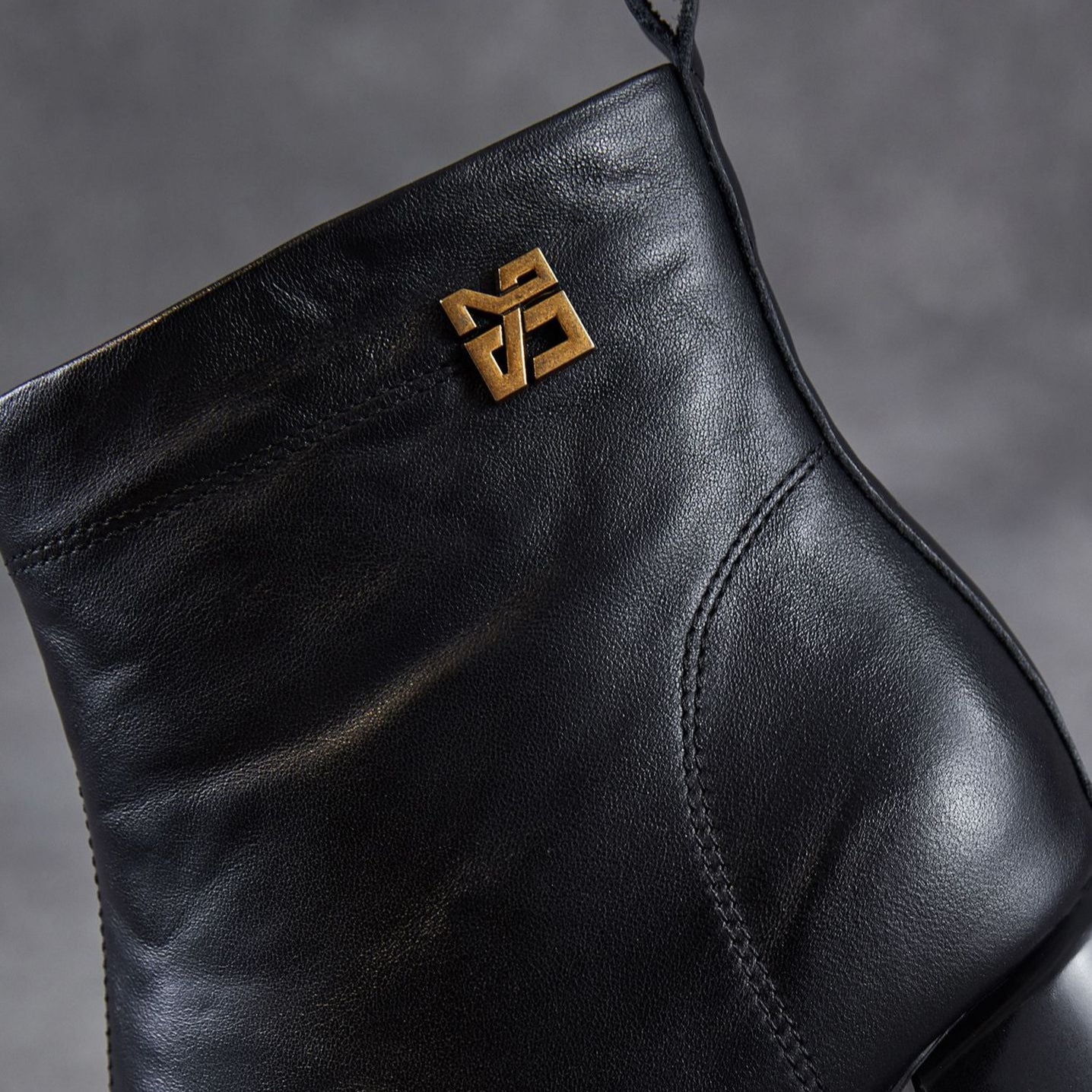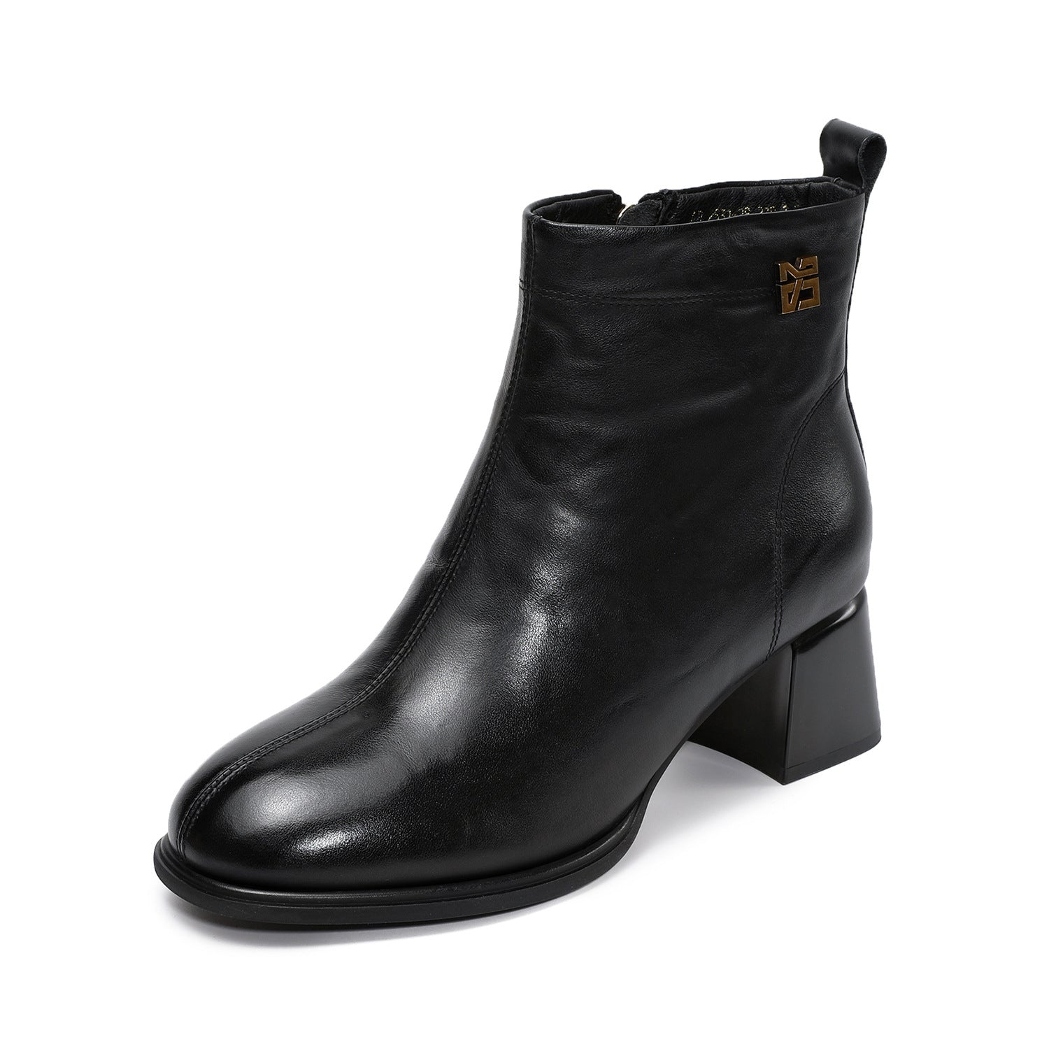 • Women's Retro Leather Furred Chunky Heel Ankle Boots
