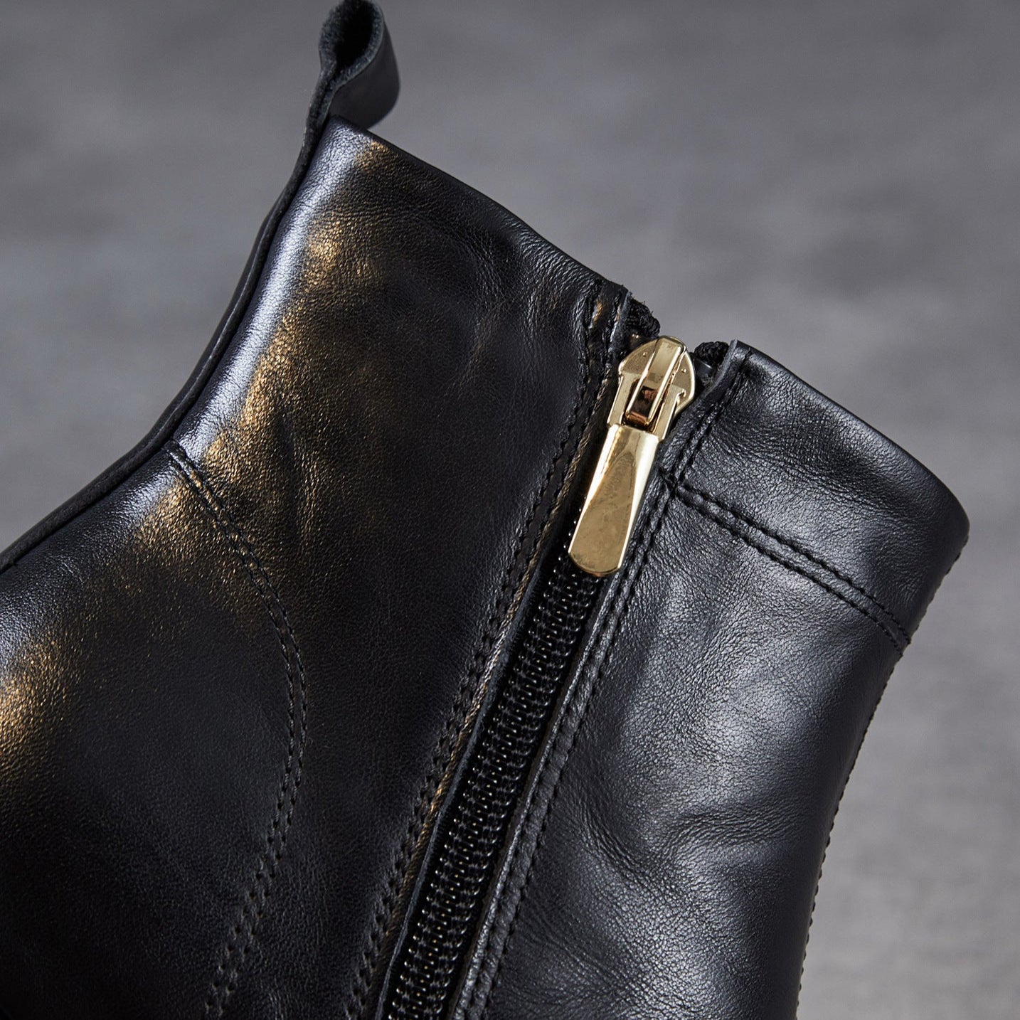 Women's Retro Leather Furred Chunky Heel Ankle Boots