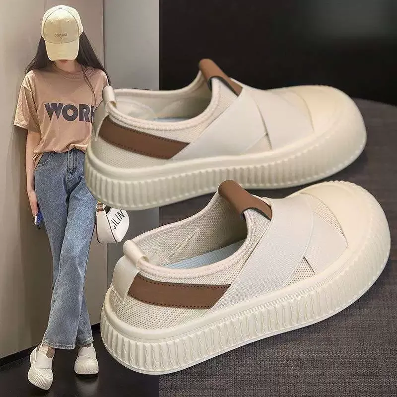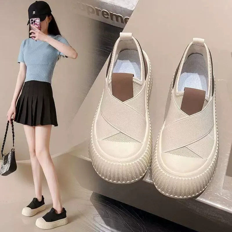 2025 New Chic Spring/Summer Niche Student Korean Style Slip-on Round Toe White Sneakers
