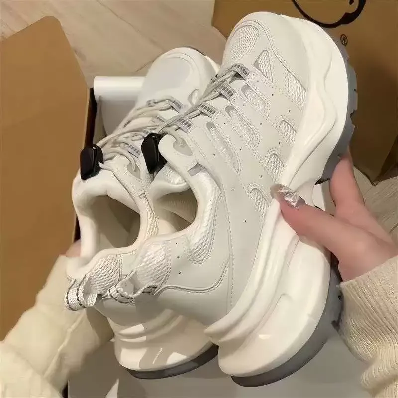 Women's white sneakers, athletic shoes, casual chunky sneakers
