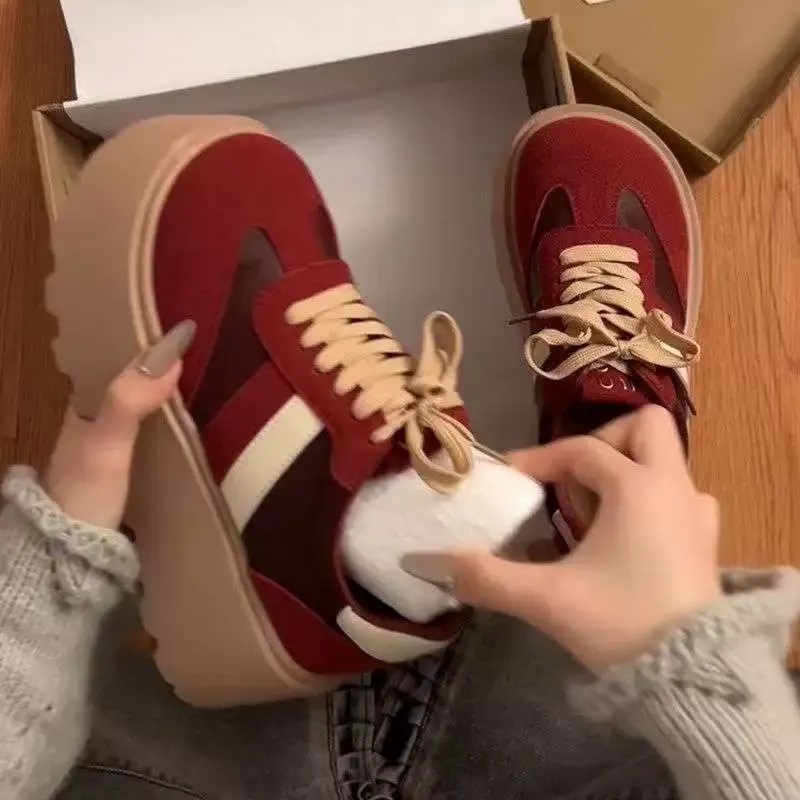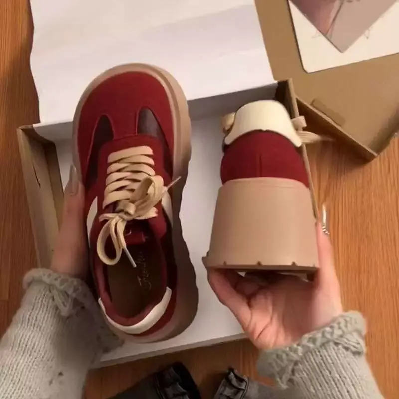 Women's Red Retro Height-Increasing Thick-Soled German Training Shoes, 2025 New Spring Style, Versatile Round Toe Casual Sneakers