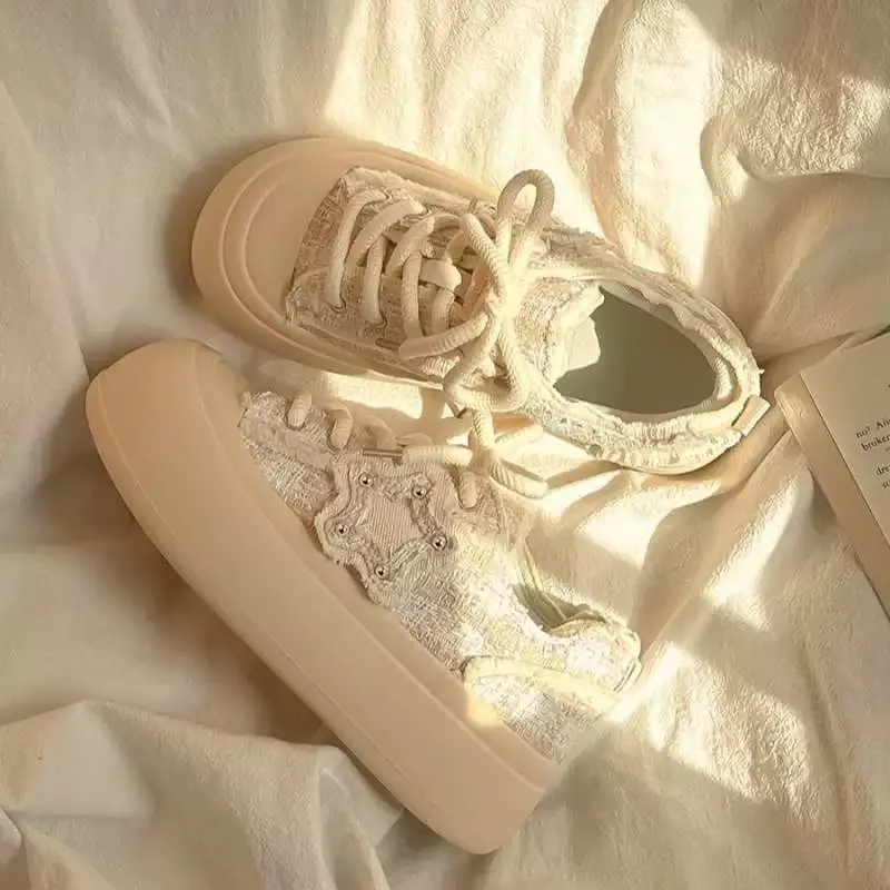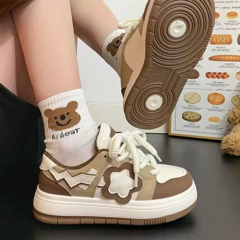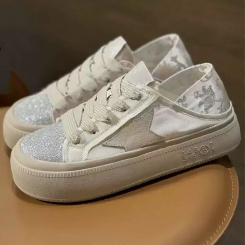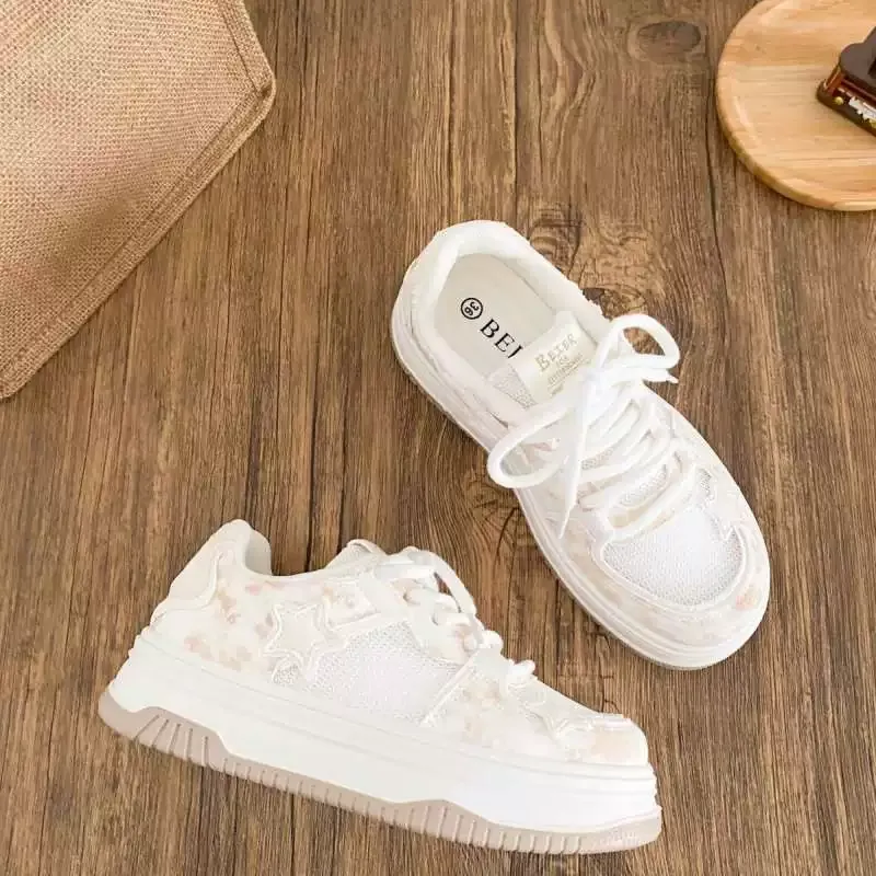 Women's Chunqiu Thick-Soled Star-Shaped Bread Shoes, 2025 New Popular White Shoes