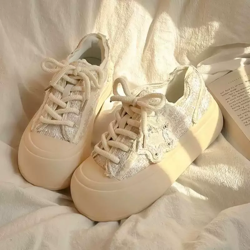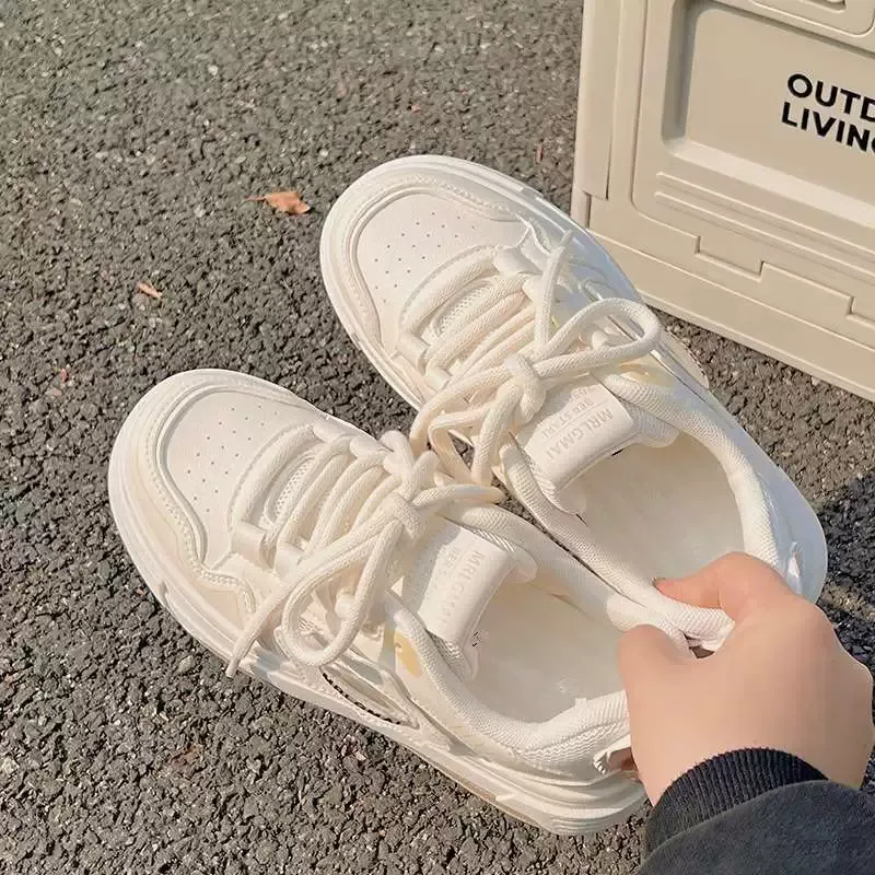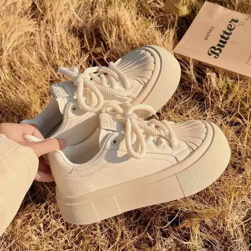 Popular niche platform sneakers for women, versatile and super trendy white sneakers
