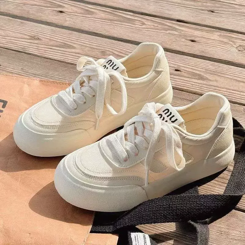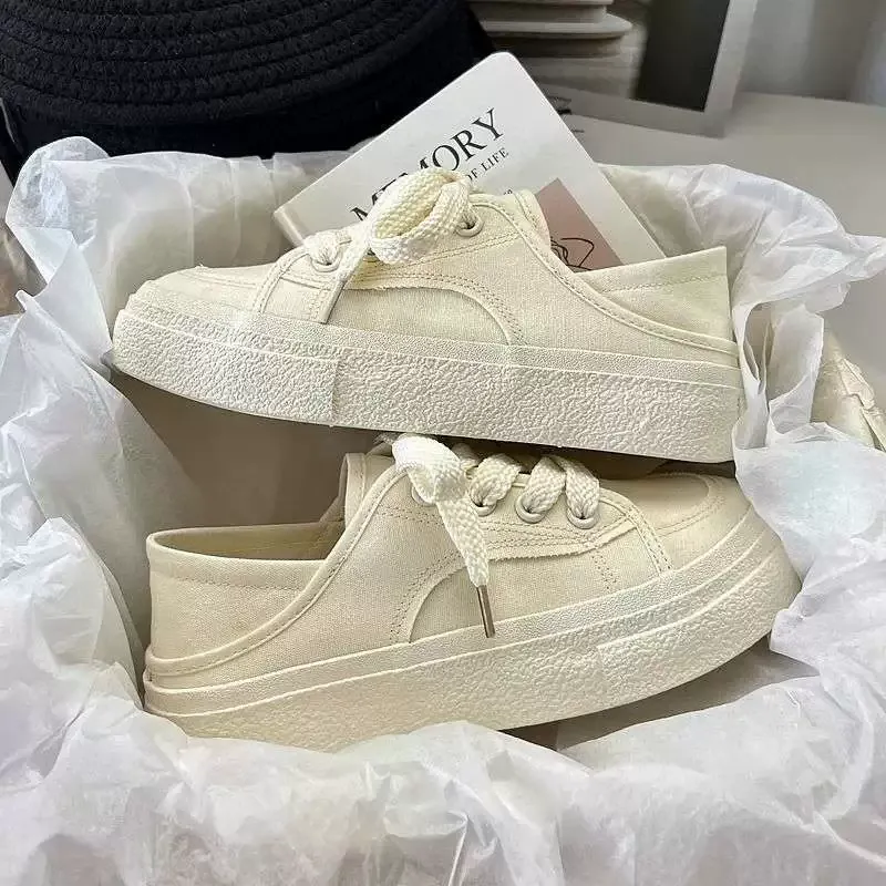 Canvas shoes with thick soles, retro style, soft soles, flat soles, round toes, mesh uppers, niche appeal, durable.