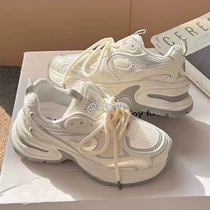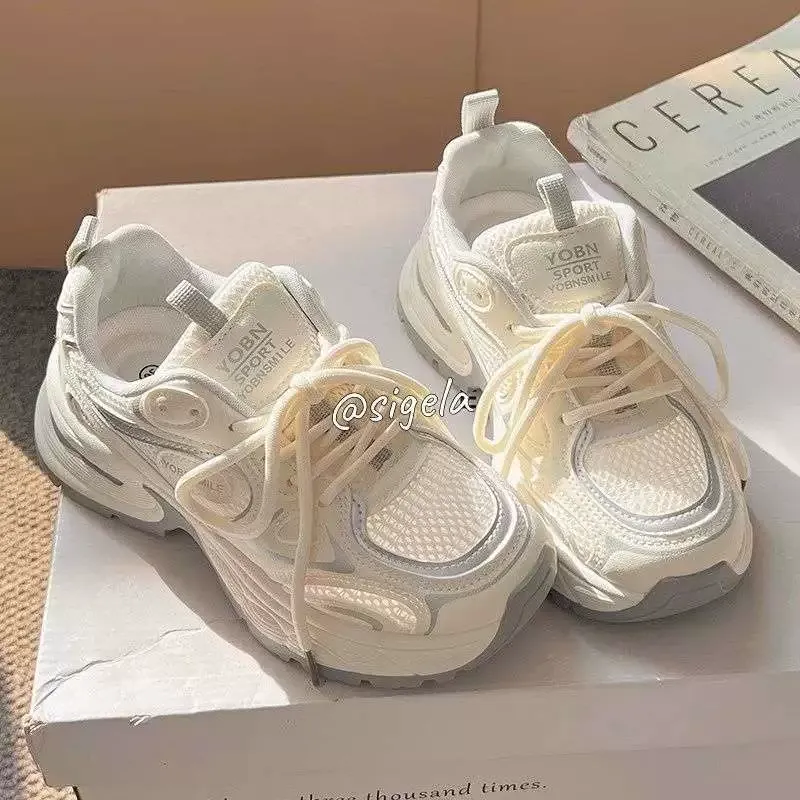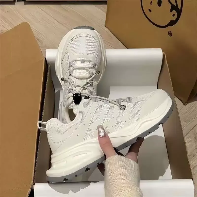 Women's chunky white sneakers, 2025 summer new style, breathable, versatile, casual sneakers