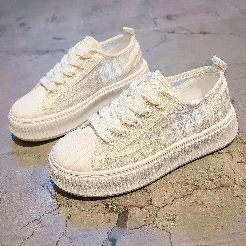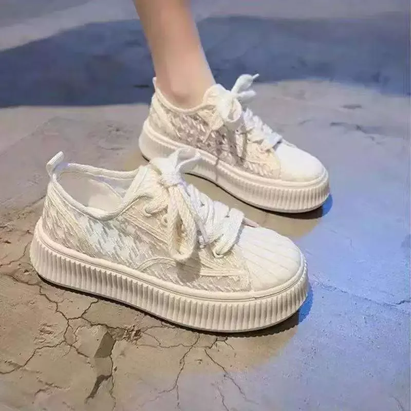 Niche Breathable Mesh Platform White Sneakers for Women, 2025 Summer New Arrival