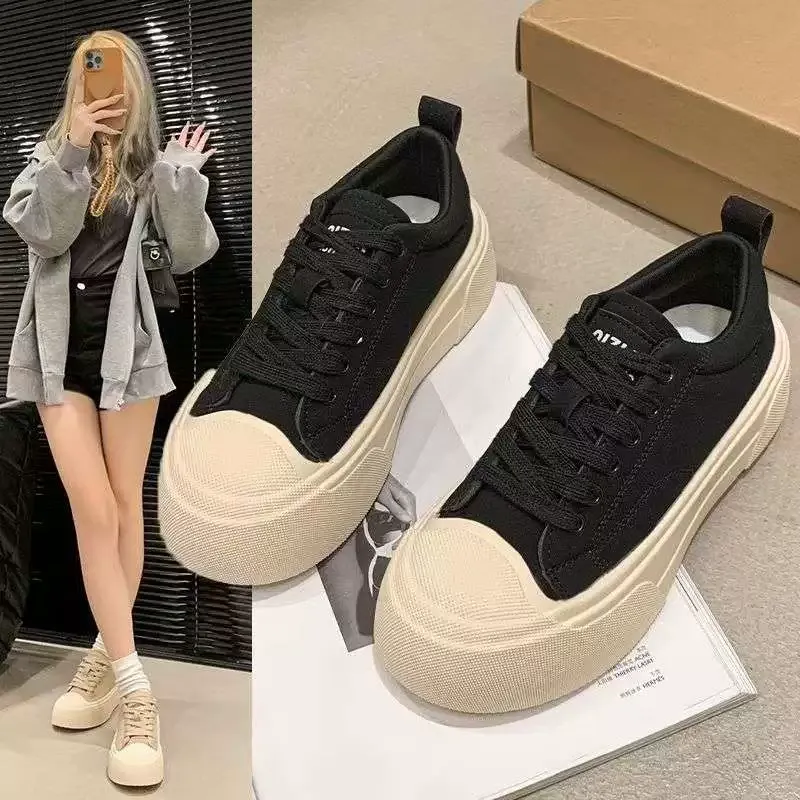 Niche platform canvas shoes for women, new Korean style, spring 2025.