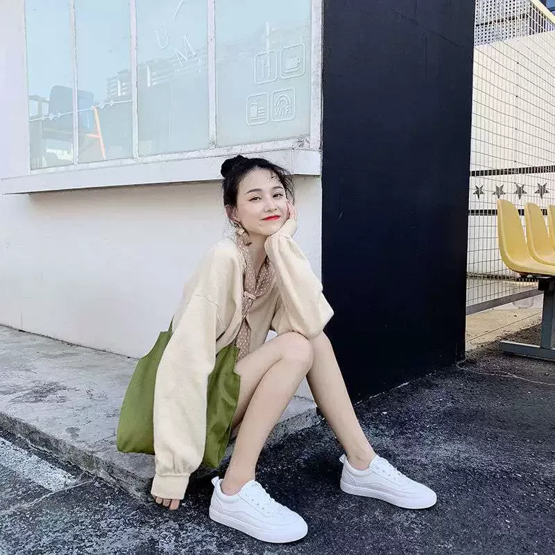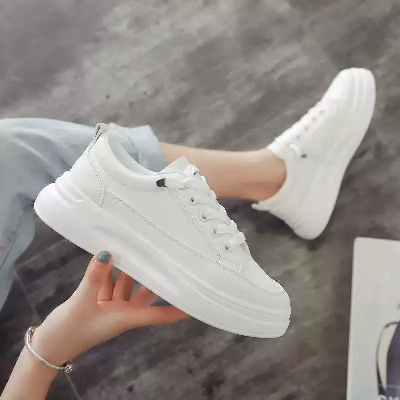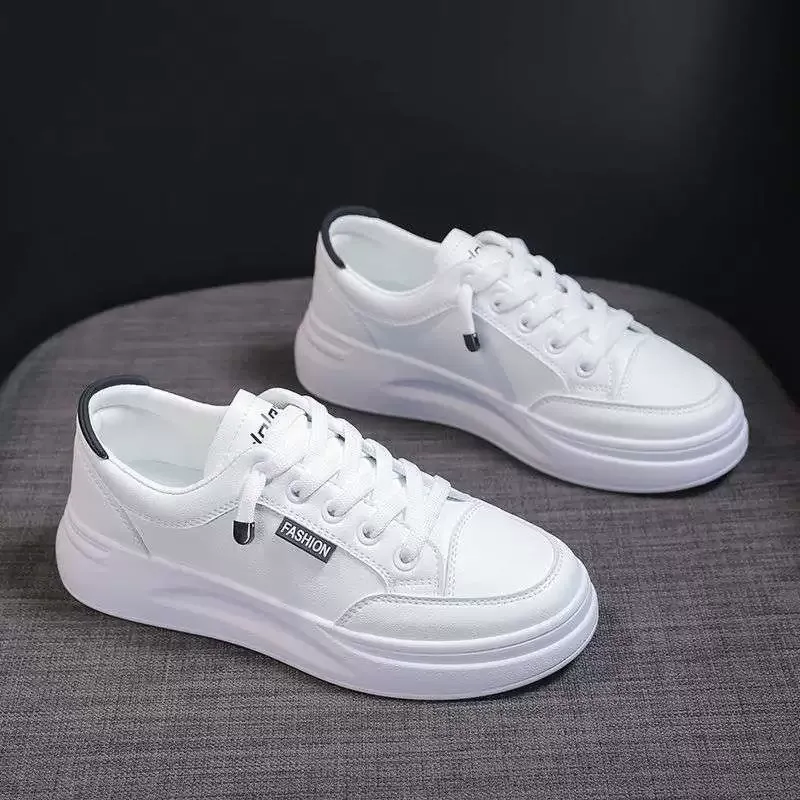 Women's white sneakers, Korean style, versatile, low-top, spring style, flat shoes.