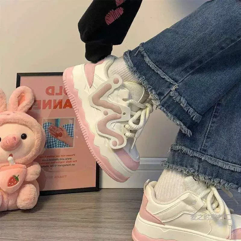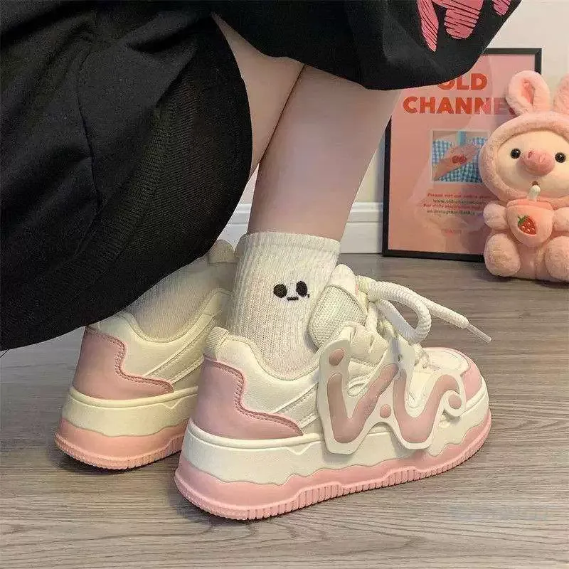 Original color-blocked cartoon loaf shoes for women, trendy casual lightweight sneakers.