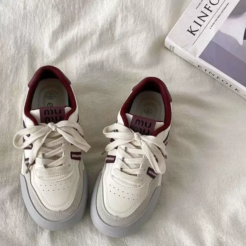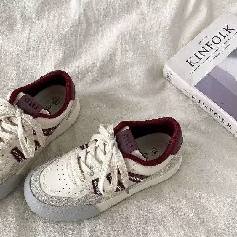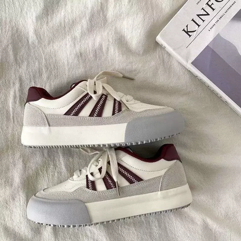 • Retro niche color-blocked German training sneakers, women's platform white sneakers