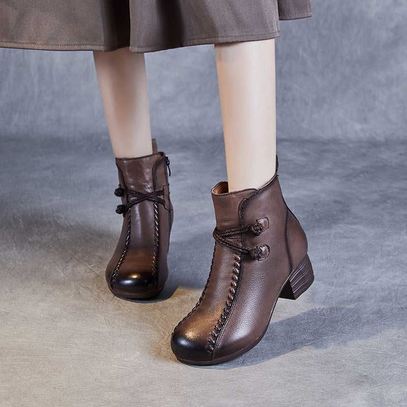 Women's Retro Leather Winter Furred Low Block Ankle Boots
