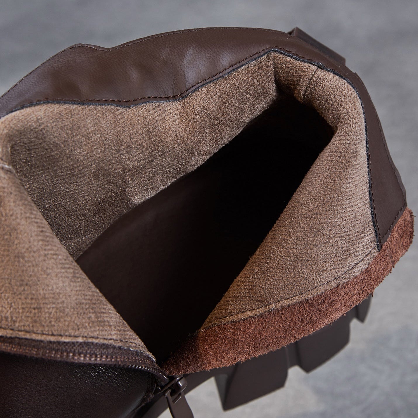 • Women's Minimalist Woven Plain leather Platform Ankle Boots