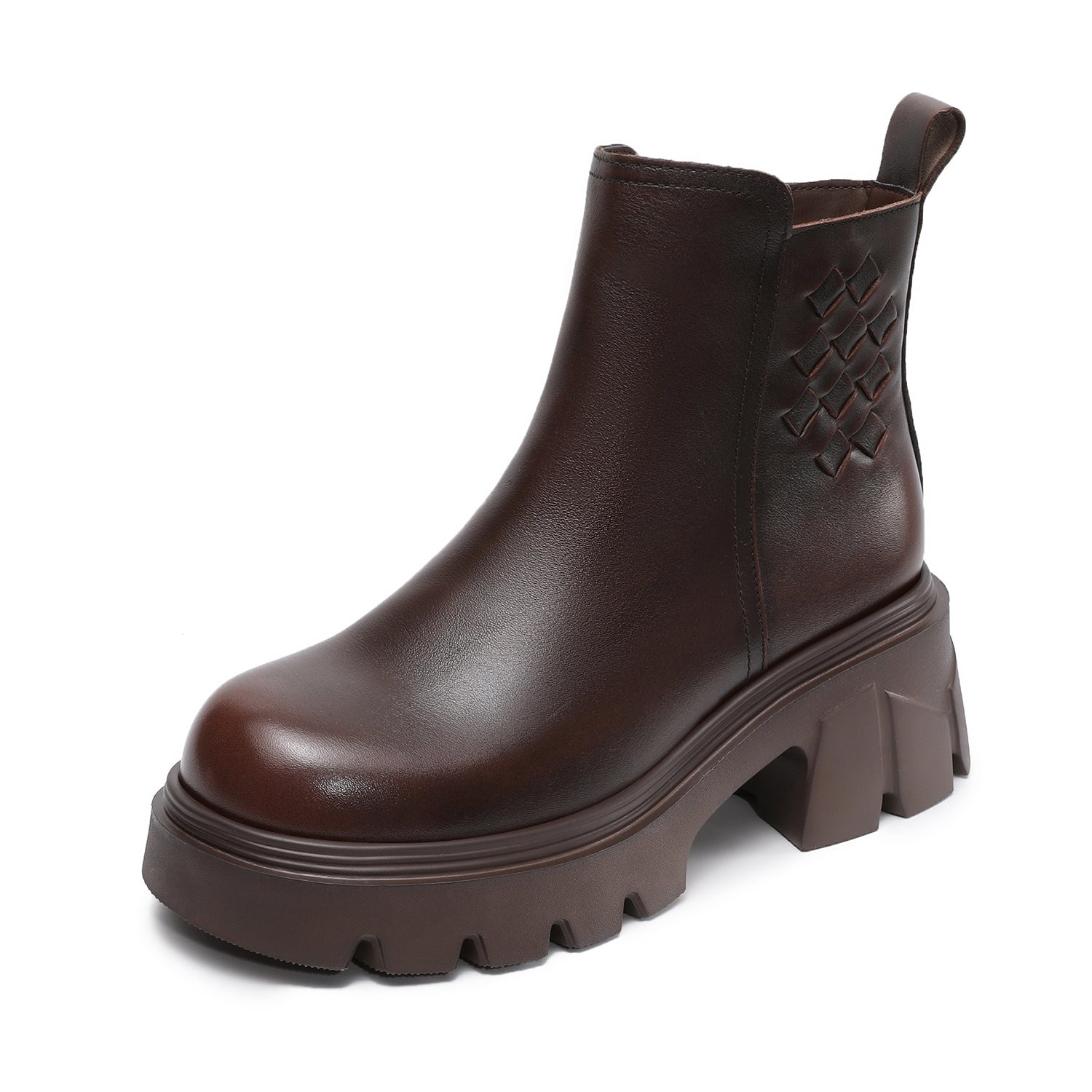 Women's Minimalist Woven Plain leather Platform Ankle Boots