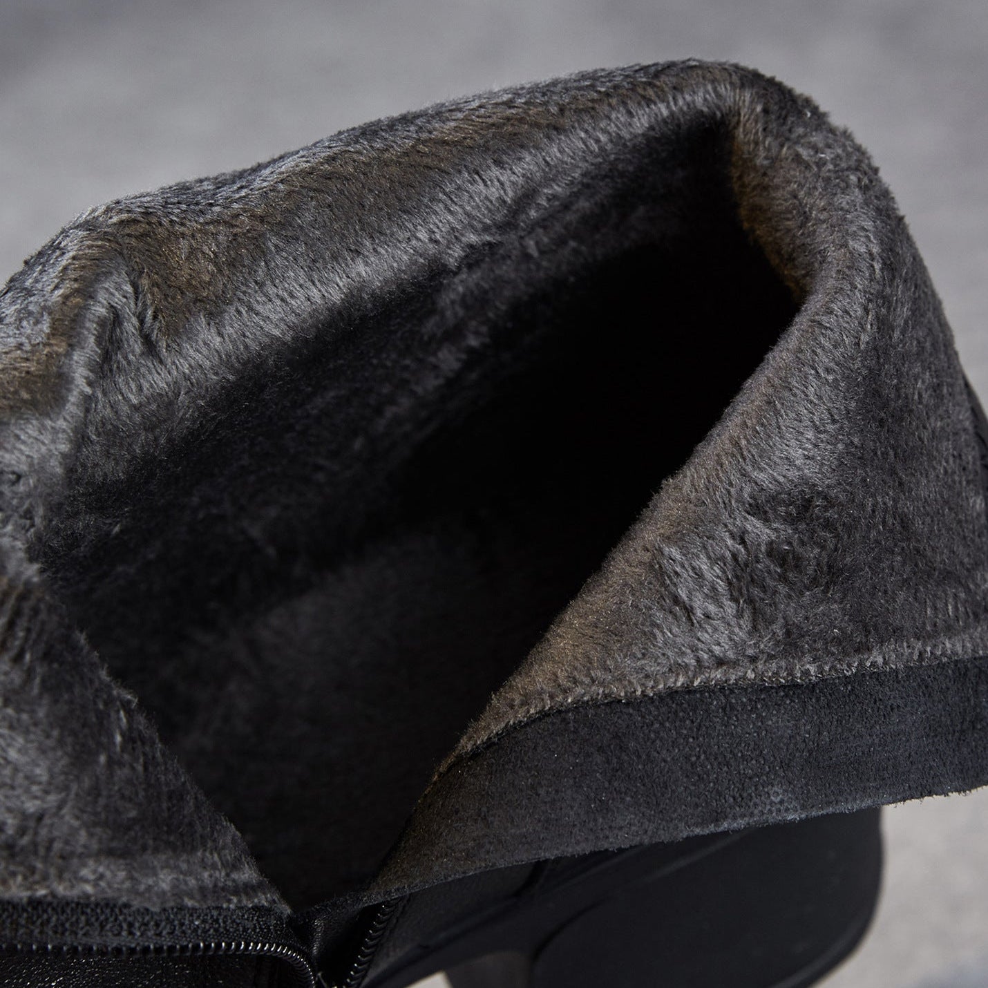 Women's Plain Leather Chunky Heel Furred Ankle Boots
