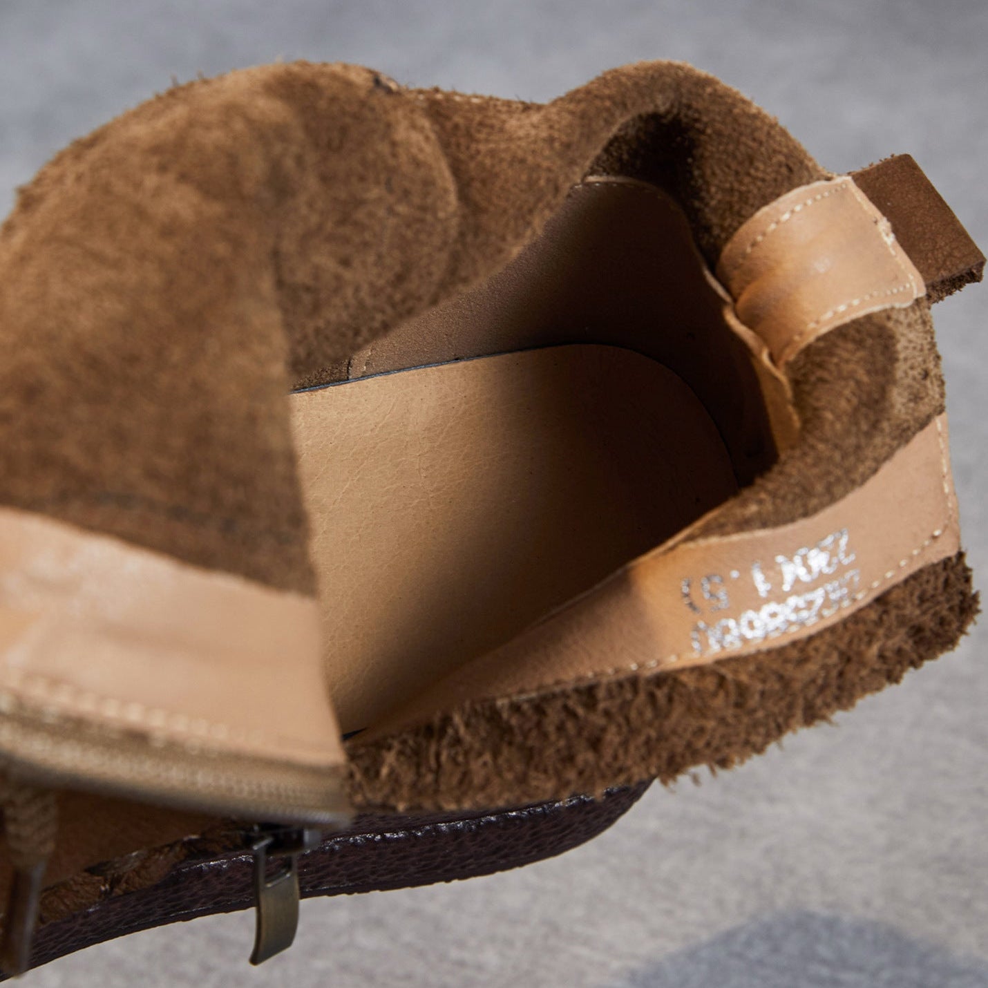 • Women's Retro Plain Leather Wedge Ankle Boots